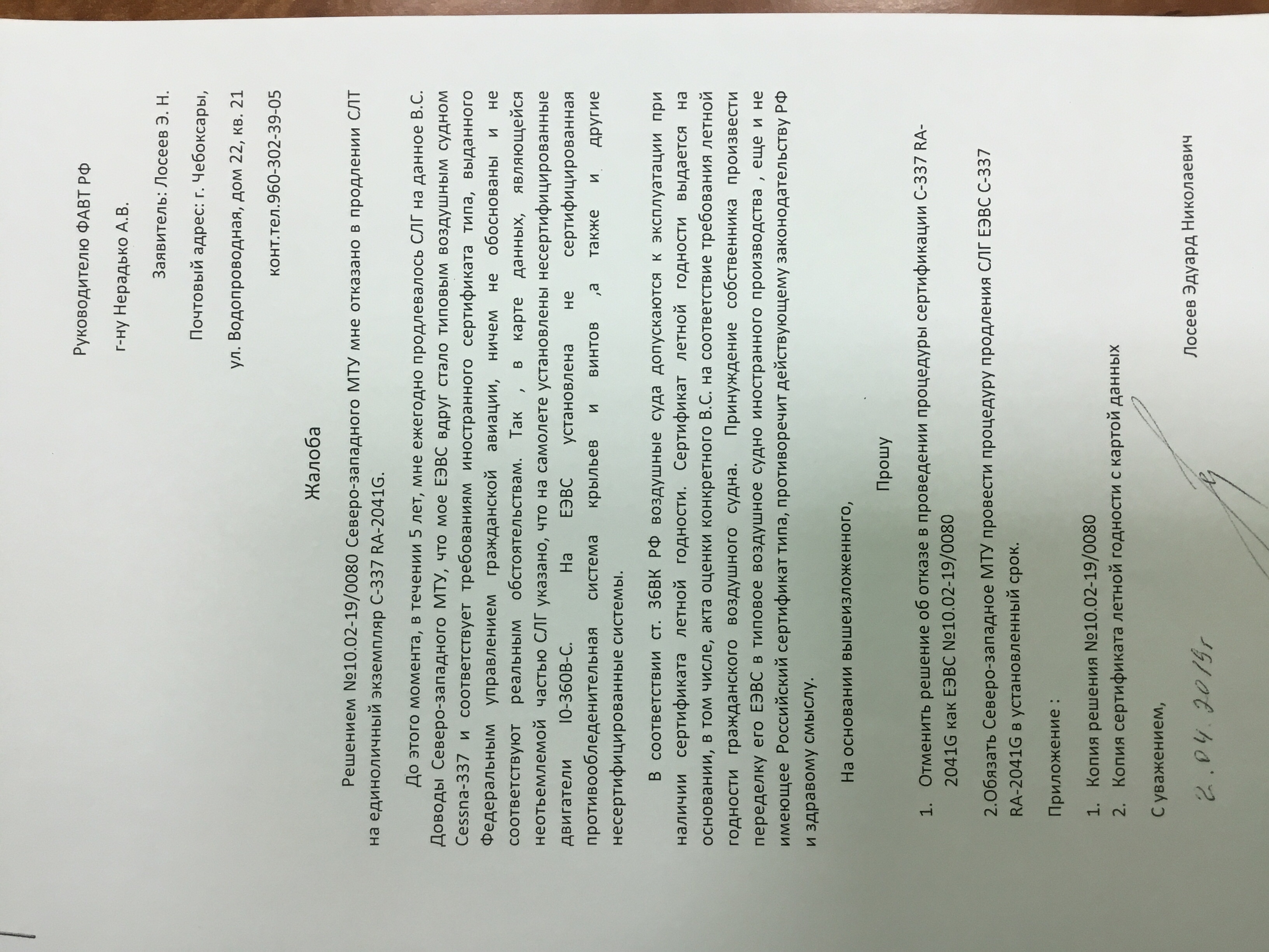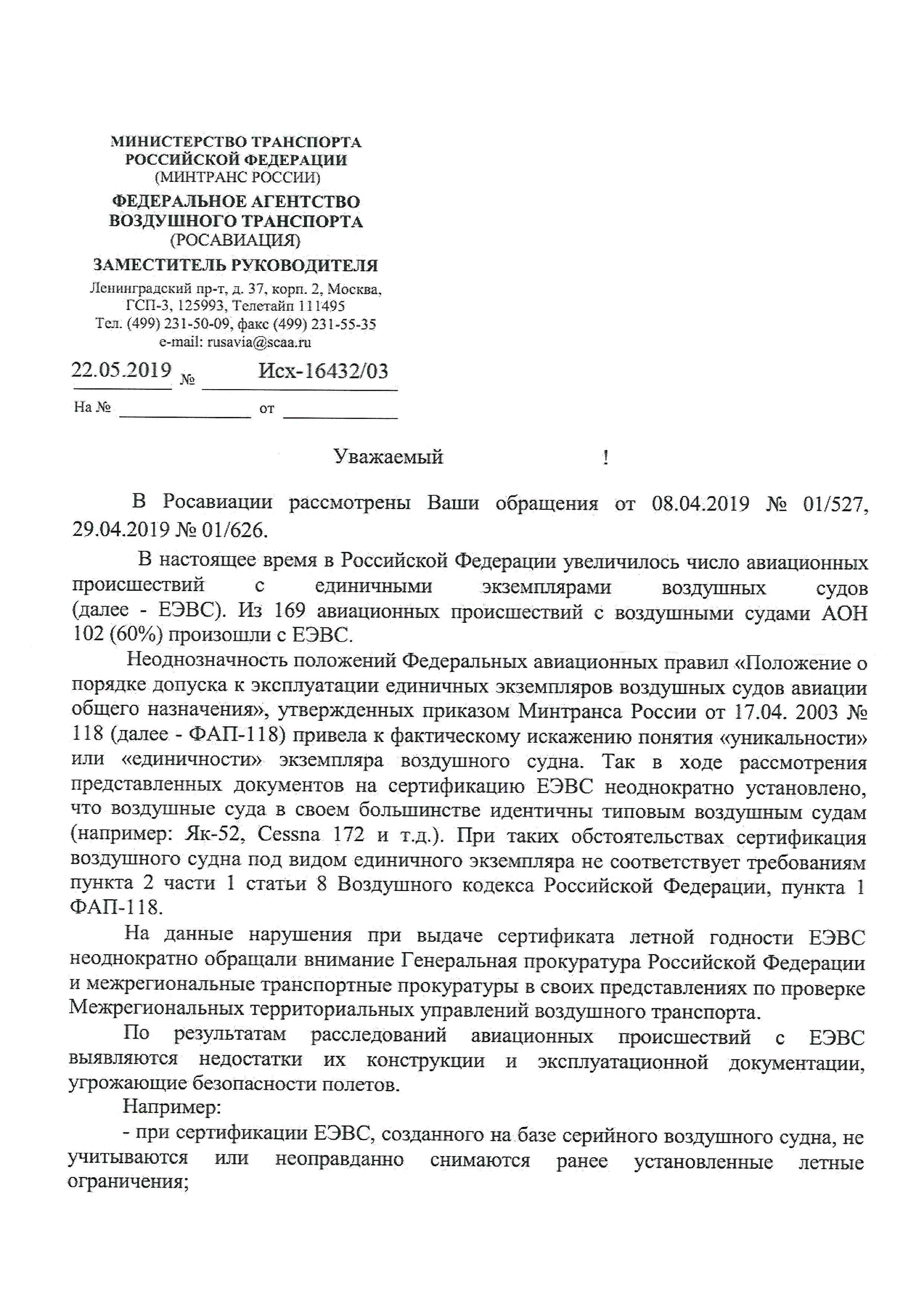 Росавиация пошла в атаку . Лишенцы - только Ваша последовательная работа с Судебными органами и обоснованные жалобы в Органы надзора ( в том числе в Прокуратуру ) и АП может создать условия для поворота ситуации в отношении АОН. Росавиация все время упирает на безопасность полётов - надо последовательно выкладывать статистику по аварийности и катастрофам в Транспортной авиации РФ .