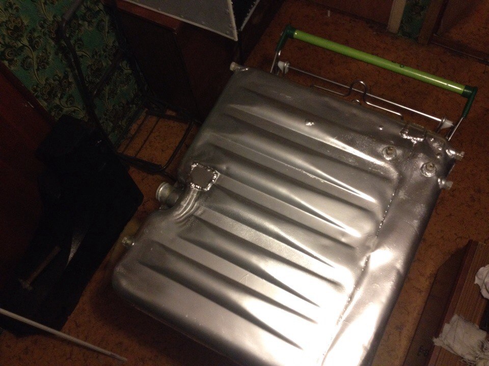 Определить через лючки место утечки не представилось возможным. Пришлось запылить всё подозрительные места мелом и при заливке топлива сразу всё стало видно. Трещина в месте вварки патрубка во второй бак. Пришлось открывать крыло(