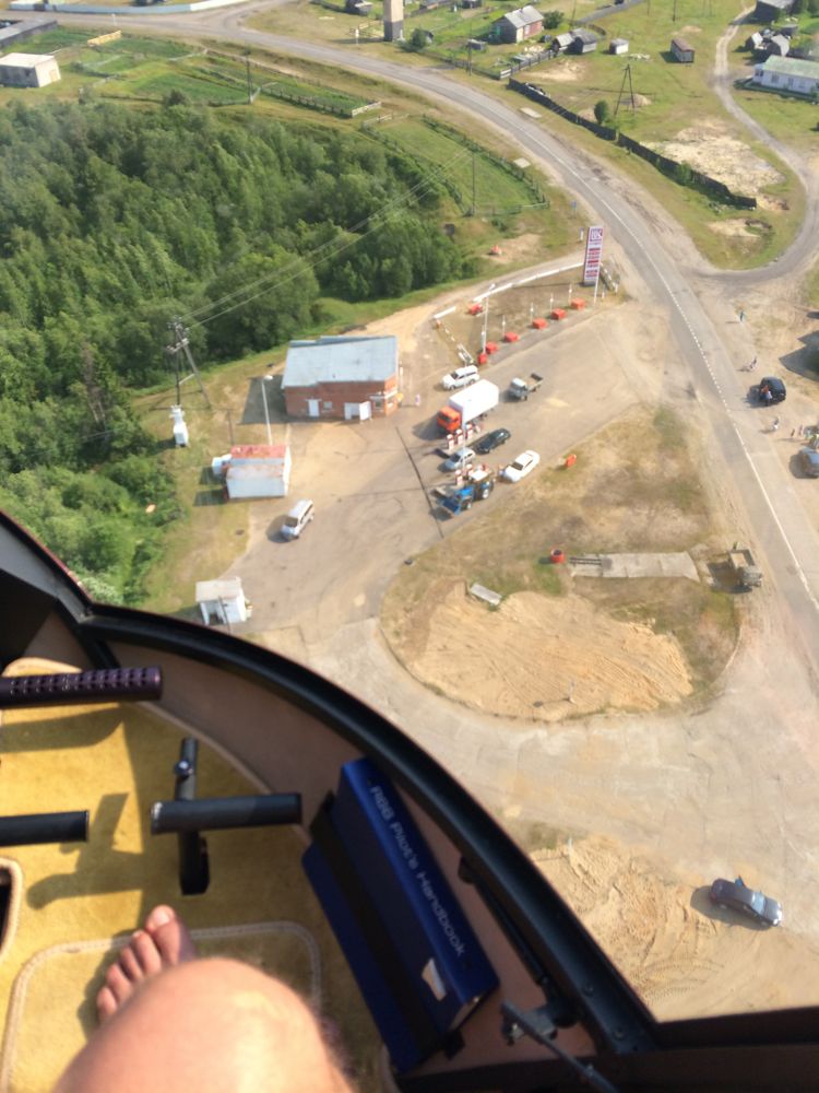 Однако, возможность дотянуть до "обеда на речке" тоже стала казаться сомнительной. Вариантов заправиться по пути как-то не было - только аэродром Ижма, известный тем, что туда пару лет назад совершил посадку Ту-154. Начали пытаться связаться с замечательным человеком, благодаря которому тогда борт успешно сел - у pilotatotale был номер его мобильного телефона (вот это - подготовка к Перелету, а?!), но номер не отвечал... Вот уже Ижма под нами... Pilotatotale по радио нам сказал: начальник аэродрома отзвонился, керосина нет ни в каком виде.