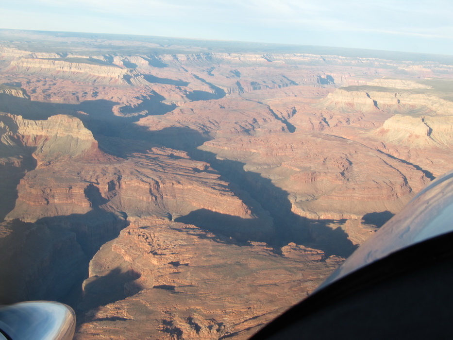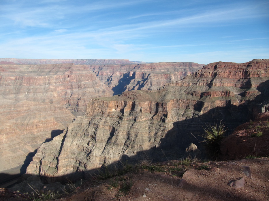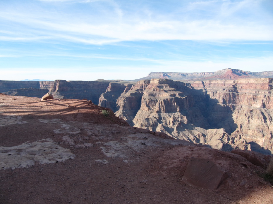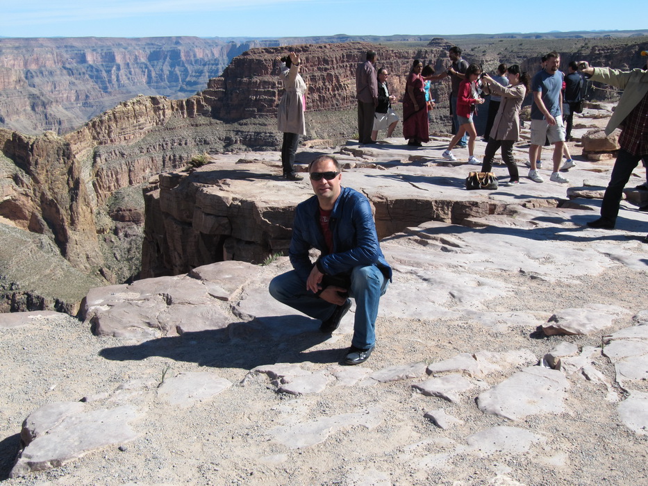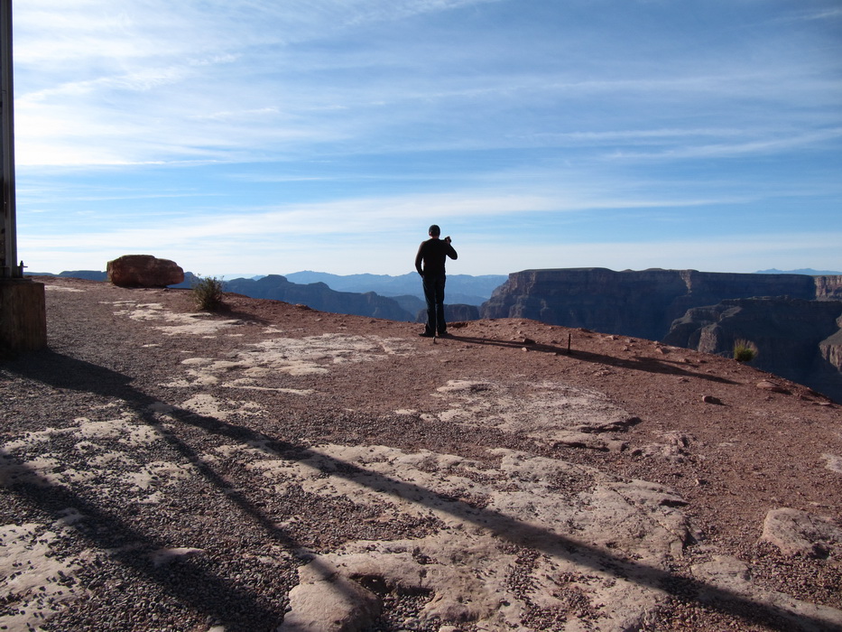 Вид каньена описать нельзя, его надо просто видеть! Это безумная картина, по масштабу и по грандиозности! Не верится что это все сделано природой, и вообще не верится что такое может быть… Наверное час мы бродили и смотрели на всю эту красоту, потом купили мороженое в местном ларьке, сели на один из уступов на краю каньена и почти в полном молчании и одиночестве просидели еще пол часа. Туристов практически не было, наверное потому, что время было уже после обеденное и основная масса любопытствующих, уже вернулась в Лас Вегас и делилась впечатлениями с соплеменниками. Когда эмоции слегка поутихли, мы сели на автобус и поехали к следующей точке. Побродив какое-то время на новом месте, мы стали торопится на аэродром. Надо было успеть до захода солнца посетить еще одно место, а времени оставалось в обрез.