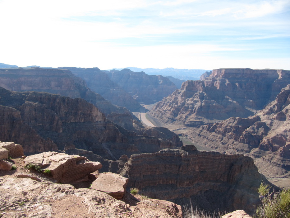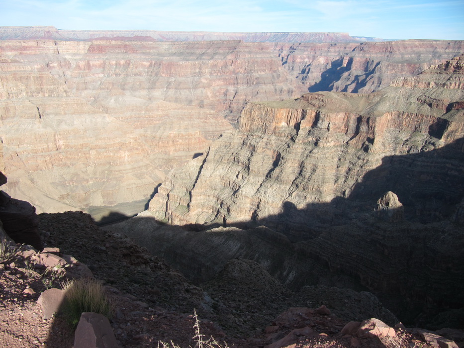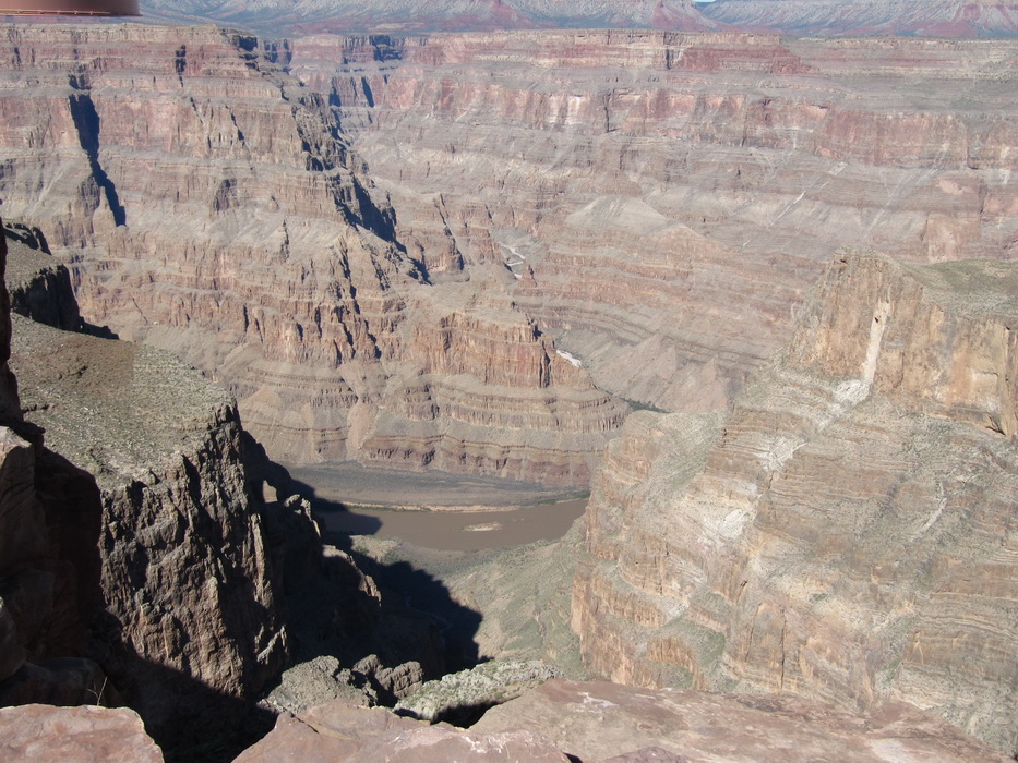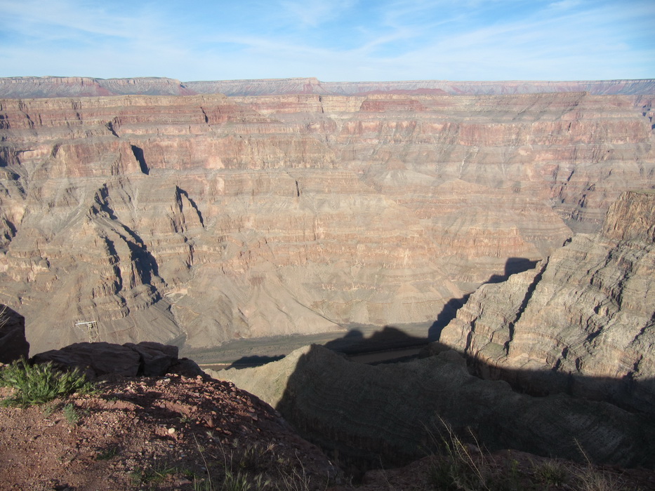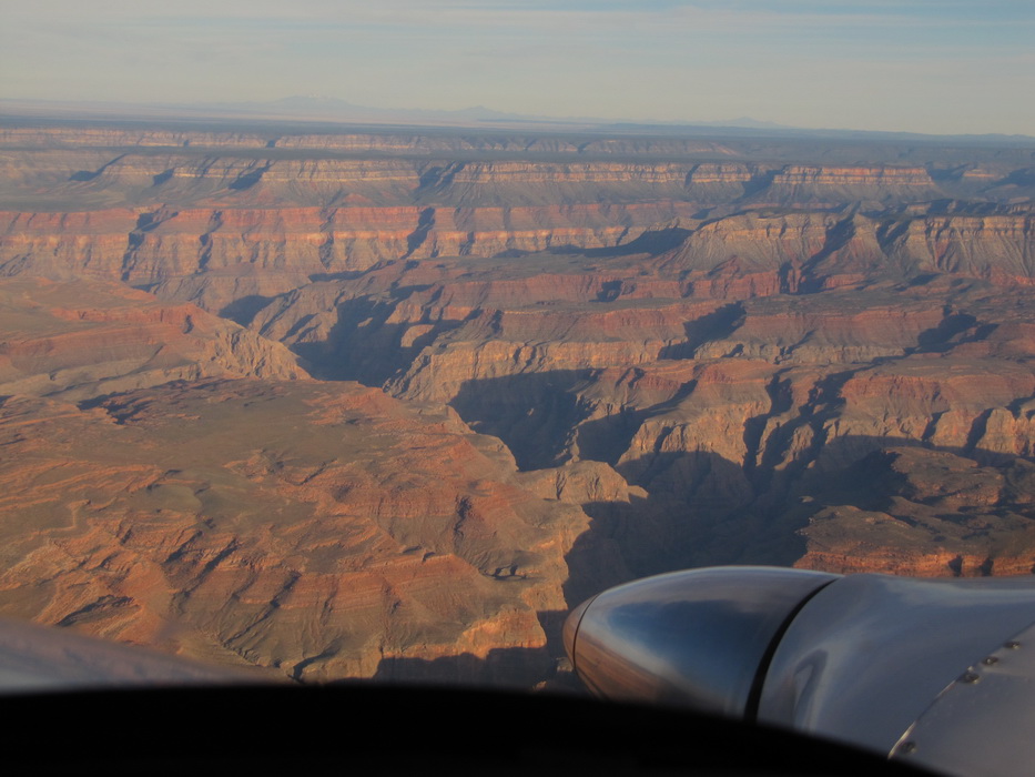 Вид каньена описать нельзя, его надо просто видеть! Это безумная картина, по масштабу и по грандиозности! Не верится что это все сделано природой, и вообще не верится что такое может быть… Наверное час мы бродили и смотрели на всю эту красоту, потом купили мороженое в местном ларьке, сели на один из уступов на краю каньена и почти в полном молчании и одиночестве просидели еще пол часа. Туристов практически не было, наверное потому, что время было уже после обеденное и основная масса любопытствующих, уже вернулась в Лас Вегас и делилась впечатлениями с соплеменниками. Когда эмоции слегка поутихли, мы сели на автобус и поехали к следующей точке. Побродив какое-то время на новом месте, мы стали торопится на аэродром. Надо было успеть до захода солнца посетить еще одно место, а времени оставалось в обрез.