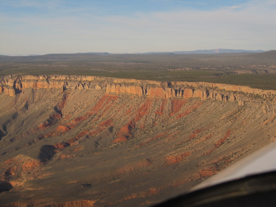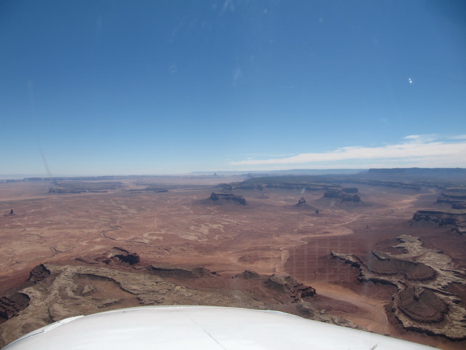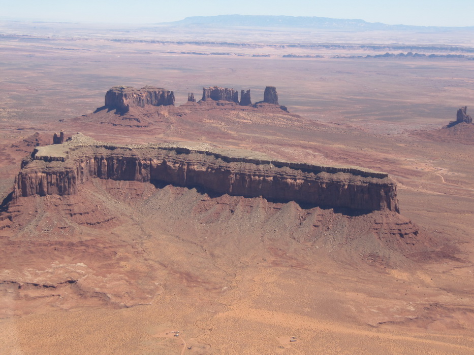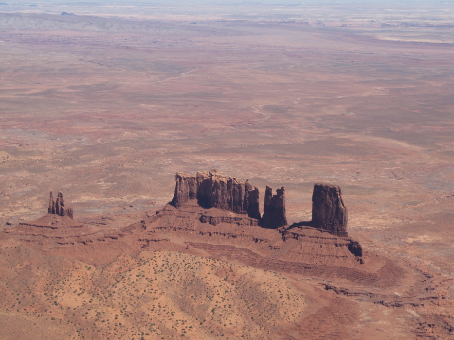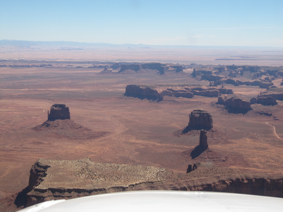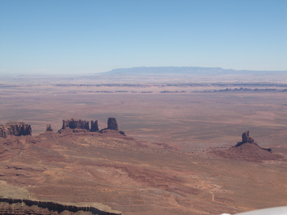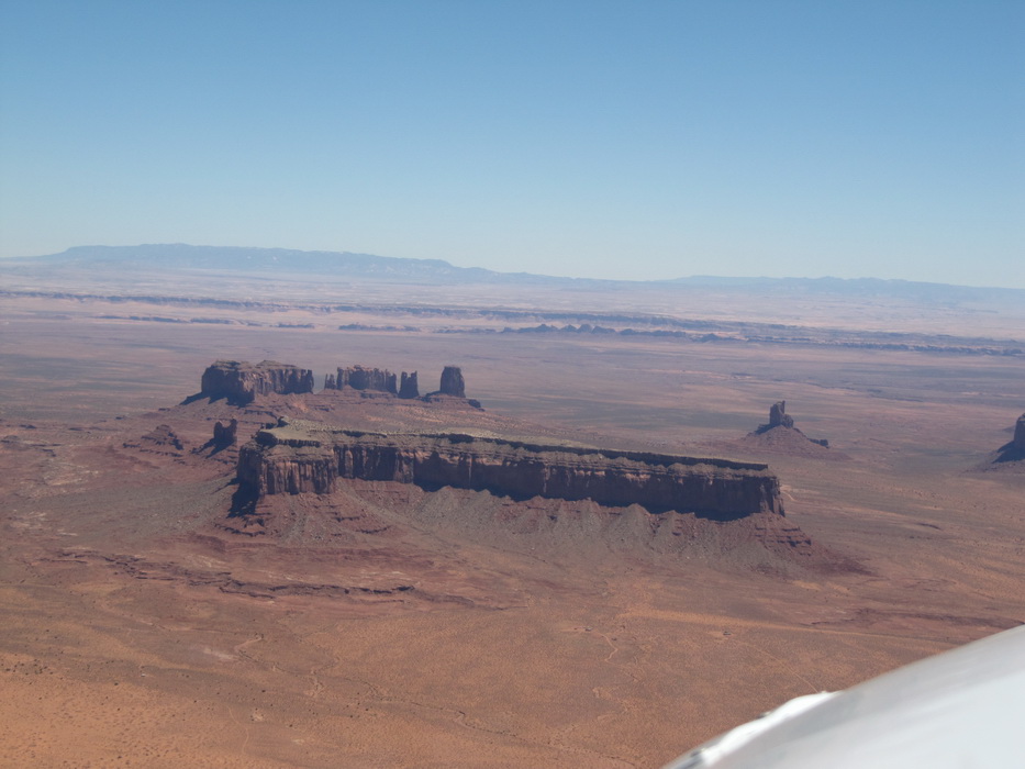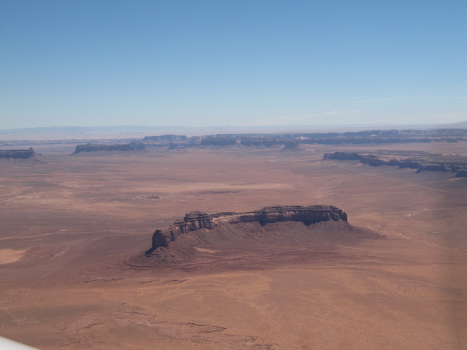 После того как, мы достаточно долго в нашем понимании пролетели по направлению к Брайс каньену, мы повернули на восток. По пути к Брайс каньену чаще всего наблюдали довольно таки высоки уступы и срезы гор. Такое ощущение, что горный хребет разрезали вдоль, а потом одну половину оставили , а другая просто исчезла. Перепады по высотам были ощутимые. Мы взяли направление на Альбукерку. Как раз в этом направлении мы должны были пролететь знаменитую долину монументов. Я не скажу, что сами монументы чем-то особенным примечательны, наверное они просто больше разрекламированы. То, что мы видели за прошедших пару дней… в общем можно брать любой кусок каньена и пиарить его.