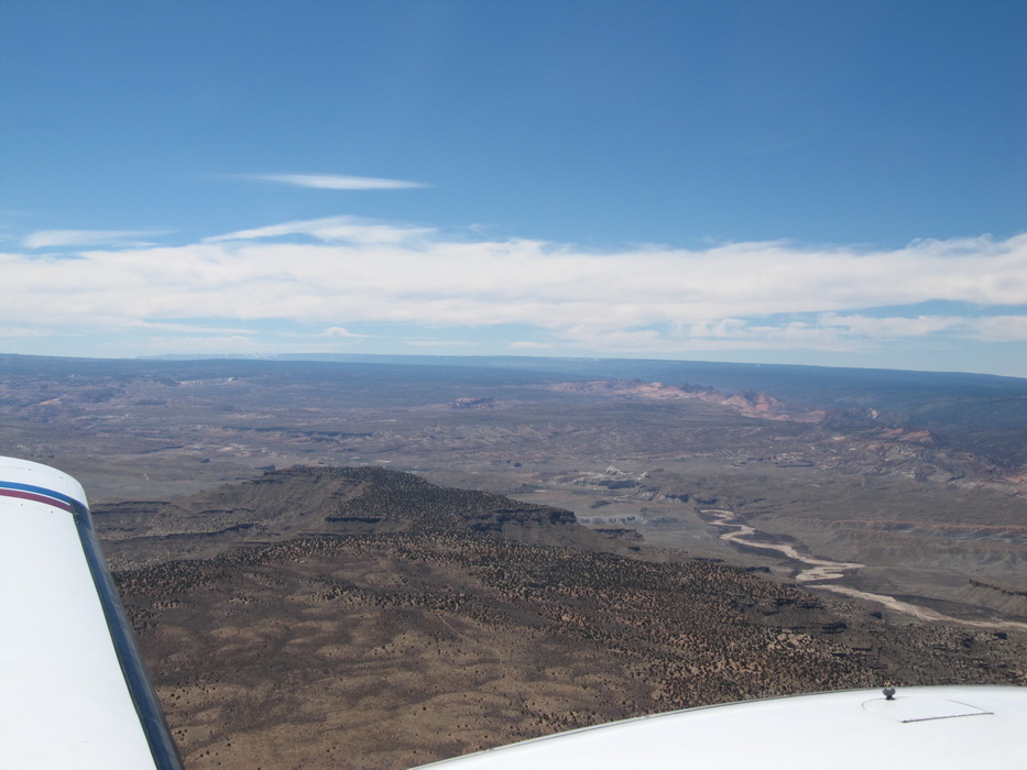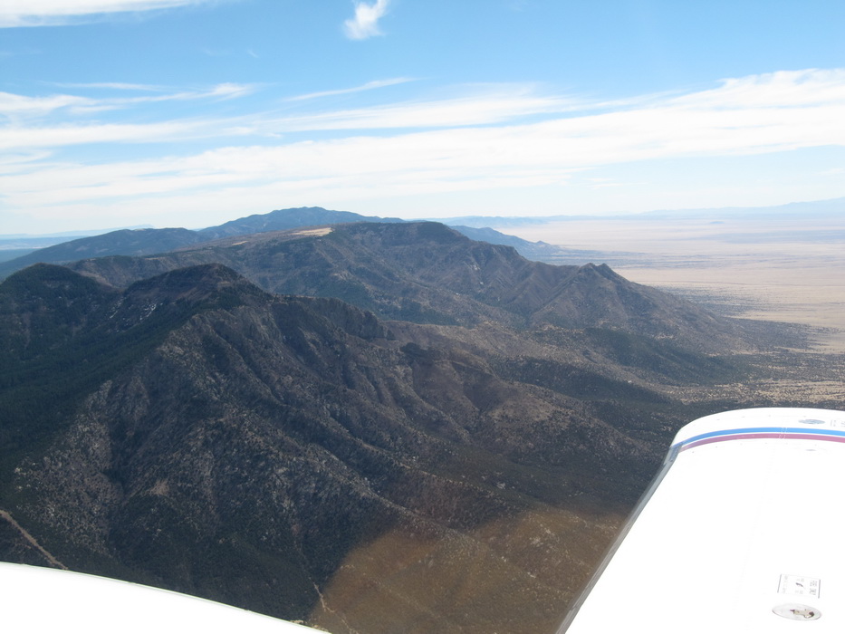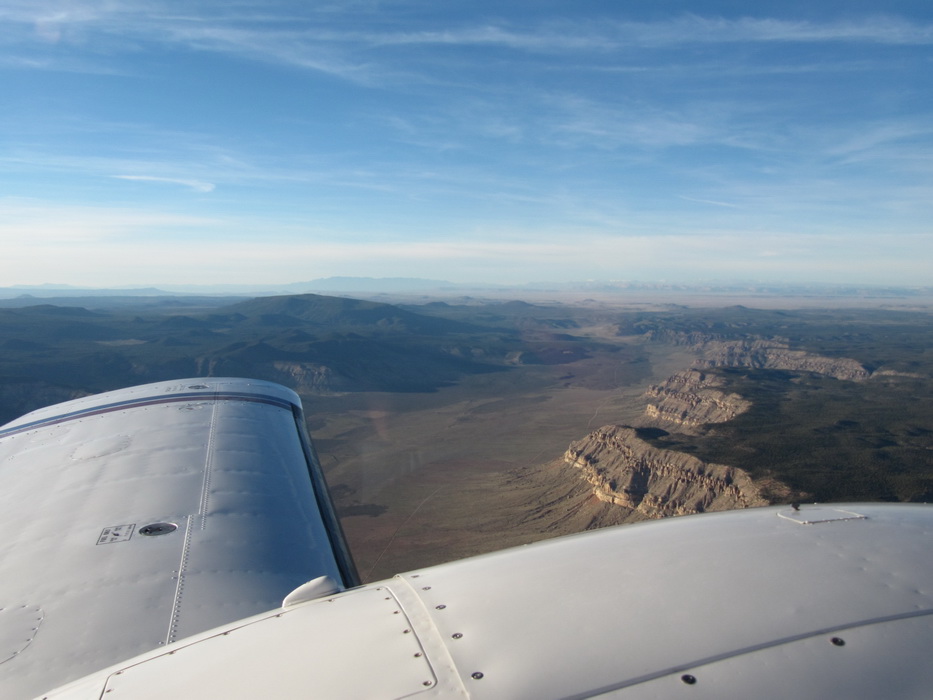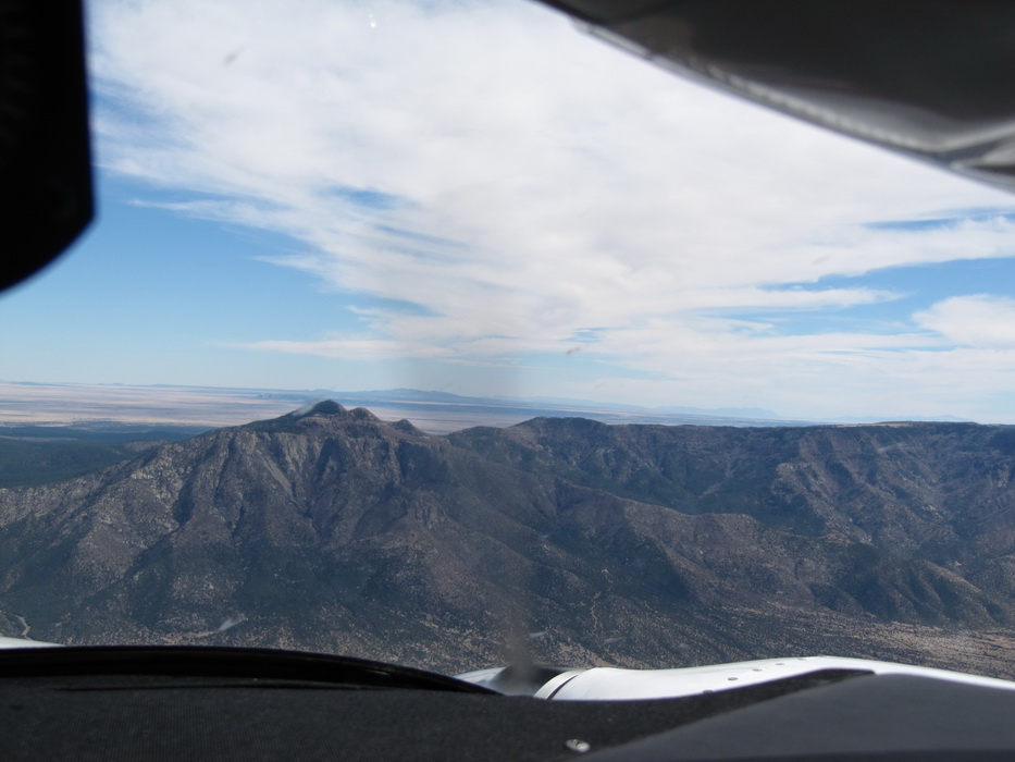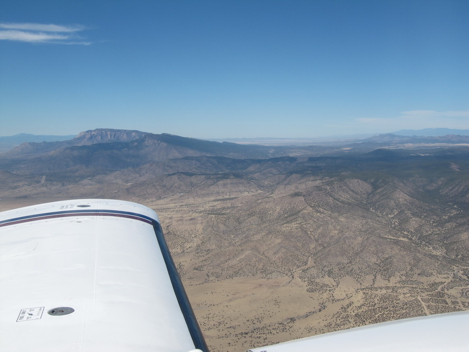 Подлетая к зоне Альбукерке, наметили впадину между двумя пиками и двинули на нее. Высота больше 10000 футов. Это было последнее горное препятствие на нашем пути. Оно уже не воспринималось как нечто необычное и особенное. Когда планировался перелет, первый вариант пути был как раз через Горы Альбукерке, но лезть туда с равнины не очень -то хотелость. Глядя на карту с высотами гор в 9000-10000 футов, казалось что это что-то сверх естественное и требующее напряжения всех и всего. Уже сейчас я понимаю, что маршрут был выбран оптимально, мы постепенно усложняли себе задачи , а впечатления следовали по возрастающей. И вот он хребет, который должен стать определенной чертой в нашем путешествии. Он отделял горы от равнины, каньен от банального плоскогорья и подводил итоговую черту нашим созерцаниям прекрасного.