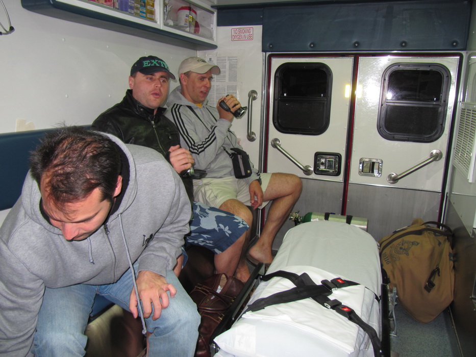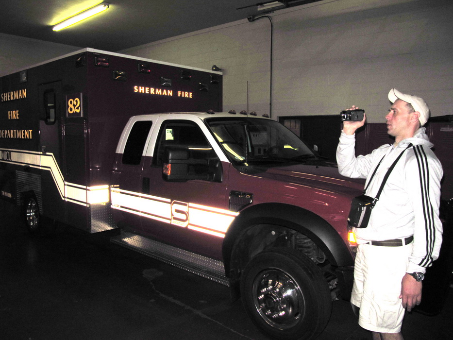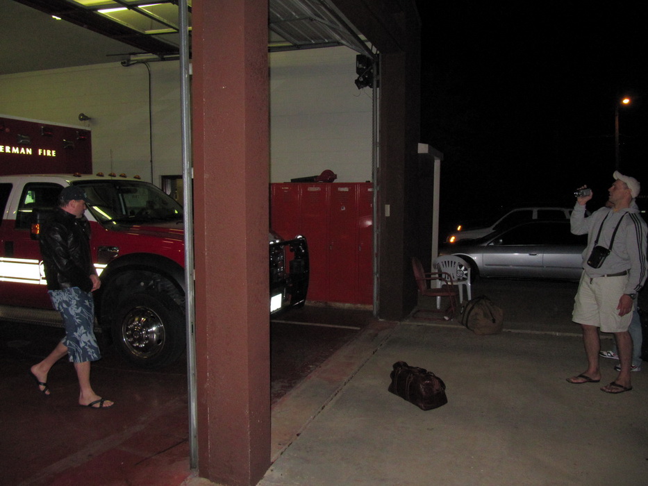Подходя к Плейнвью слышим еще один борт. Аэростар докладывал удаление и последующий подход к бэйс (между 3 и 4). Услышав его, я доложил , что нахожусь уже на даунвинд (между 2 и 3) и захожу на посадку на ту же полосу. Выполняя третий слышу его доклад что он на глиссаде, то есть этот засранец влез прямо передо мной. Когда я доложил четвертый, он был уже перед полосой. Пришлось прямо на четвертом сделать разворот на 360 градусов, что бы дать ему время освободить полосу. В это время добрый дяденька поинтересовался где мы? Докладывать ему о том, что мы крутимся в районе четвертого как-то не хотелось и мы промолчали. Заходя на посадку мы видели его уже освобождающего полосу. После того как мы зарулили и вышли из самолета, этот дядечка подьехал к нам на машине, извинился за то, что влез перед нами в круг и предложил свою помощь в транспортировке нас до ближайшего ресторана. Приято пообщавшись , мы отказались от помощи, потому как нам предложили шикарный автомобиль в прокат. После того как мы заправились и пообедали , мы продолжили свой путь. Надо было пролететь еще хотя бы пару часов, что бы на следующий день успеть добраться до конечной точки. Следующим аэродромом выбрали Sharman по самому простому принципу,- он был самым большим на нашем пути, находился в двух часах лету, и там должно было быть такси и ночлег. В Шермен мы садились уже ночью. Сделав круг над городом, мы еще раз убедились что он большой и проблем с жильем не должно быть. Привязав самолет, мы идем по направлению к аэродромной постройке. Закрытая дверь и отсутствие кого-либо, нас уже не удивляло, проблема была в другом,-как и где взять такси??? Мы находились на окраине города и не имели представления в каком направлении двигаться. Сидеть на месте резона никакого не было, надо было идти хоть куда-нибудь. Выйдя на дорогу, мы заметили на удалении пары километров какое-то светящееся здание. В надежде, что это будет что-то вроде АЗС, мы выдвинулись в его направлении. Подойдя ближе ,мы обнаруживаем вместо АЗС, гараж с двумя пожарными машинами. На встречу нам выходят пара спасателей, еще бы , очень любопытно поглазеть на придурков с чемоданами которые пешком куда-то направляются… Далее картина «сами мы не местные…» в общем: нам бы такси до города… Озадаченные нашим появлением спасатели, вытащили газетенку с рекламой и начали обзванивать местные таксопарки. Мы же достали оружие диверсанта и начали фотографировать местный ангар МЧС. В ангаре стояли два абсолютно чистых автомобиля, нет, вы не поняли… они были абсолютно чистые, нет, не такие как на конвеере АвтоВАЗа, они были отхерачены до безумного блеска. Фотографии данного обьекта мы решили не передавать нашим службам МЧС, дабы наши шойгуйчики не тронулись рассудком от чистоты автопарка потенциального противни… нет , соперника . Пока шел вызов такси мы весело подшучивали, предлагая местным спасателям довезти нас до отеля на одном из спасательных автомобильчике. Время шло, такси не вызывалось. Я уж не знаю, что творилось в Шермане с такси, но его почему-то вызвать не удавалось, и вдруг, один из спасателей подошел к нам и сказал: «Ок гайз! ком он!» и указал на один из великолепных автомобильчиков! Мы абсолютно ошарашенные предложенным транспортом, не заставили себя ждать , схватили сумки и ломанулись к машине! Говорить о том, что этот автомобиль внутри был е
