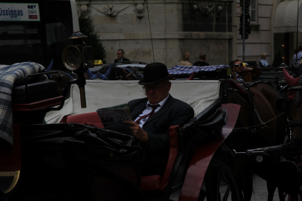 Мы забрались в один из двухэтажных ресторанов и отметили свой прилет хорошим ужином под австрийское пиво. На следующее утро мы уже были в центре, первое впечатление о Вене , как о тоскливом месте, сразу улетучилось . На Стефанплатц были толпы народа , у самого костела стояла целая вереница из конных экипажей.