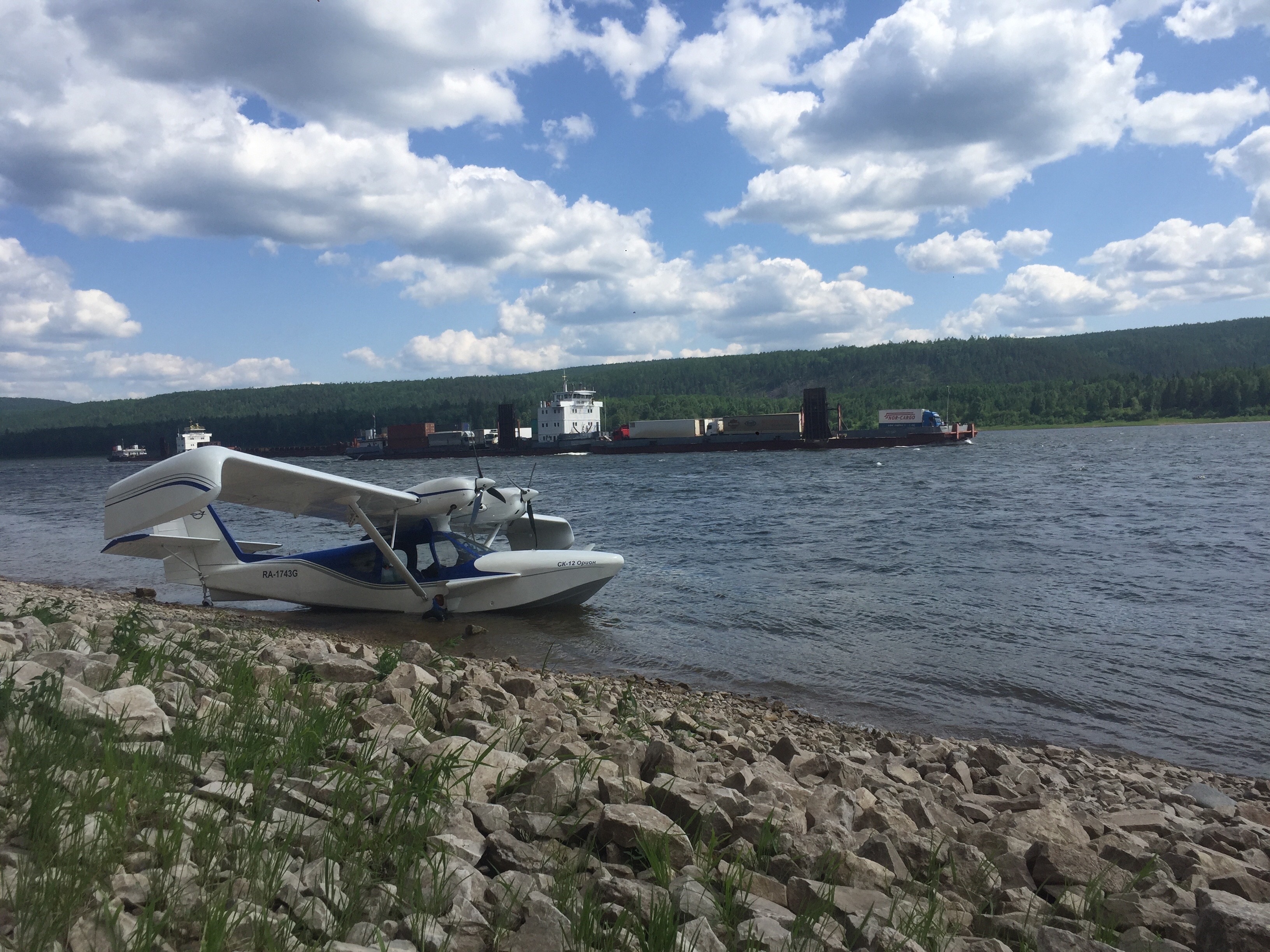 Альтернатива о которой я хочу написать и которую я пощупал, это как раз Орион Ск-14, то есть модификация Ск-12 на которых я налетал достаточно много. Начну с того, что я один с ним справляюсь и на земле и на воде без помощников (если надо развернуть, подтянуть, подставить, хотя и от помощи не отказываюсь). Самолет с полной нагрузкой и в сухопутном и в водяном варианте укладывается в 350 метров полосы и воды, но подчеркну (у влетанного пилота) и на взлет и на посадку. За счет эффективного обдува крыла двумя винтами пустой уходит в воздух с пятидесяти метров, садится легко на площадку или воду в двести. Такое не позволяет или позволяет с большим трудом даже Л-42М. Прекрасная управляемость на воде за счет разнотяга двигателей. Довольно большая кабина в новой модификации Ск-14 (задний диван легко вмещает трех плотных дядек, за задними местами объемный багажник, это помимо огромного багажника в носу лодки), кстати для длинномерных грузов одномоментно демонтируется задняя стенка пассажирской кабины и можно возить предметы до трех метров и больше.. Скорость эксплуатационная от 170 до 195 км/час на высоте 300 метров, то есть однозначно ниже Сессны или Л-42(45), но насколько я понял топикстартеру это не критично, впрочем на 80-м эшелоне она будет и за 200 км/час. Самолет довольно легко и полноценно летает на лыжах зимой (правда лыжи должны быть правильными) :wink: и совершенно не боится снега любой глубины включая и пухляк поскольку часть опоры распределяется на днище лодки, а запас тяги двух винтов легко выдергивает полностью загруженный самолет вверх. Очень хорошее сочетание в данном типе это надежное, крепкое дюралевое подкосное крыло и пластиковая лодка, а это как раз и есть сочетание долговечности Сессны с надежностью и ремонтопригодностью мыльниц. По простоте обслуживания Ротаксов я умолчу как и не буду лишний раз говорить, что 95-й бензин можно достать практически везде или в крайнем случае долить октанкорректора в 92-й. В общем это самолет полетав на котором три года я могу сказать, что при грамотной эксплуатации это очень надежная, шикарно пассивно безопасная машина в которой я лечу совершенно спокойно на любой высоте имея под собой почти везде посадочные площадки на любые случаи жизни включая обледенение и ухудшение погоды. Есть к сожалению и аварийный опыт, но могу сказать, что самолет ведет себя практически безупречно, может летать сам и его классическое самолетное поведение помогает лопуху-пилоту вылезти из любой ситуации достойно :lol: Если говорить о недостатках, то нужно изначально понимать, что это ДВУХДВИГАТЕЛЬНЫЙ и ГИДРО самолет и сложности мультиэнджина нужно учитывать при обучении и в дальнейшей эксплуатации, а это гораздо более высокий уровень подготовки пилота и желательно более высокий личный уровень инструктора (я знаю несколько таких пилотов). Это навыки не только взлетов и посадок попеременно с воды и с земли, но даже особенности просто управления на воде... Но могу сказать, что после освоения этого самолета вы станете королем и воздуха и земли :D ,и если на джипе ваши друзья всегда смогут доехать до места посадки вашего сухопутного пепелаца, то амфибия завезет вас в такие ебеня, что даже медицинская бригада после полета на вертолёте будет долго плеваться и материться обдирая свои белые халаты по прибрежным кустам обрывистого берега, 