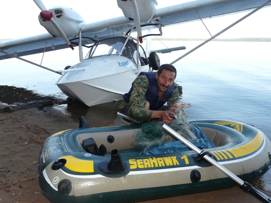 В прошлые выходные мы с тестем на Птенце обследовали пару водоёмов на предмет рыбалки. Водоёмы понравились. Учитывая мой небольшой САМостоятельный налёт на Корвете, я попросил инструктора слетать со мной на рыбалку. Озеро Васильевское встретило нас зеркалом. Но с инструктором нестрашо. Мы мягко приводнились, и каждый занялся своим делом. Я ловил рыбу, а инструктор собирал грибы. У инструктора получилось значительно лучше. Собрались домой и легко стартовав с зеркала полетели в обратный путь. Но азарт рыболова не давал мне спокойно спать в течении двух дней .