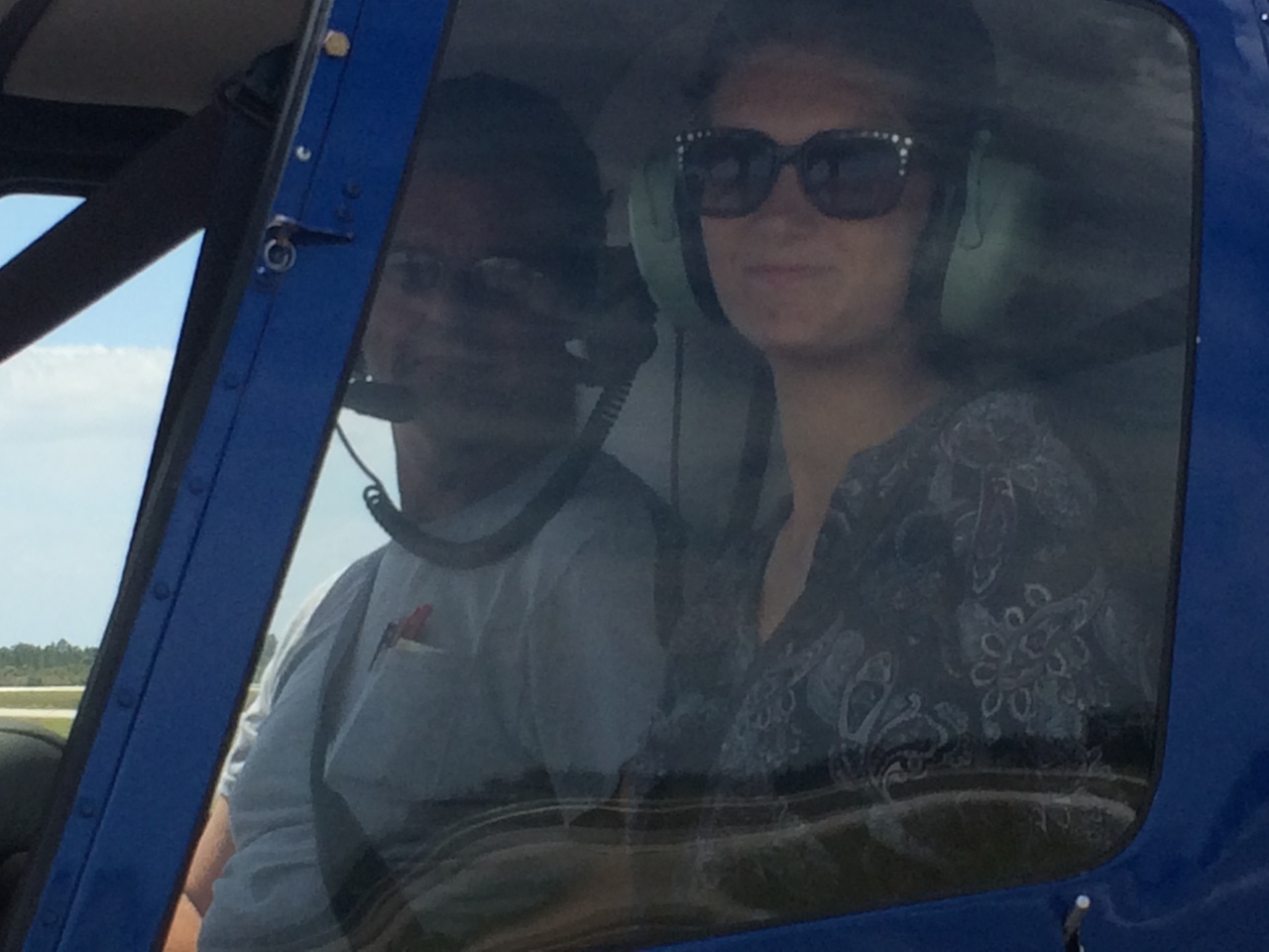 Потом встретились с Антохой и Юлей у ангаров после их полетов с другими студентами, они были рады моему визиту в полном составе.Юля сфоткалась с Софьей.