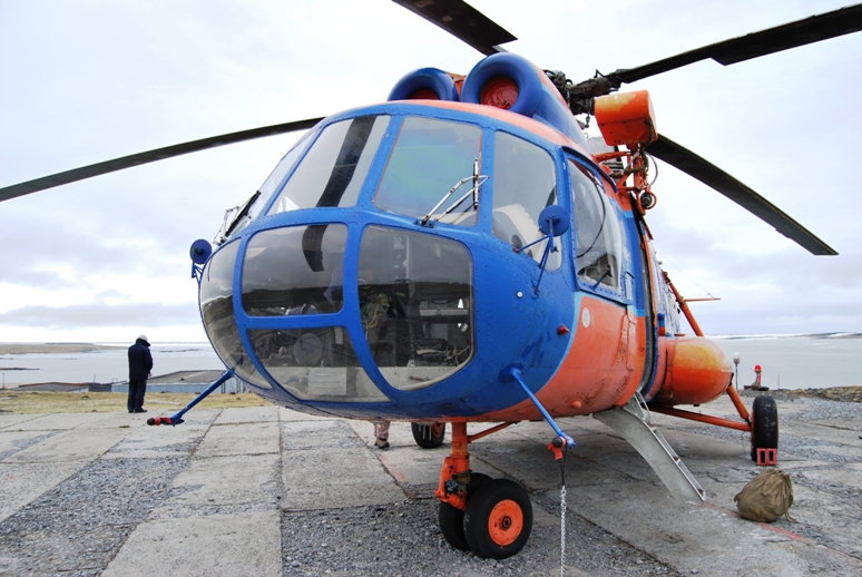 вертолет перевез нас на материковую часть поселка