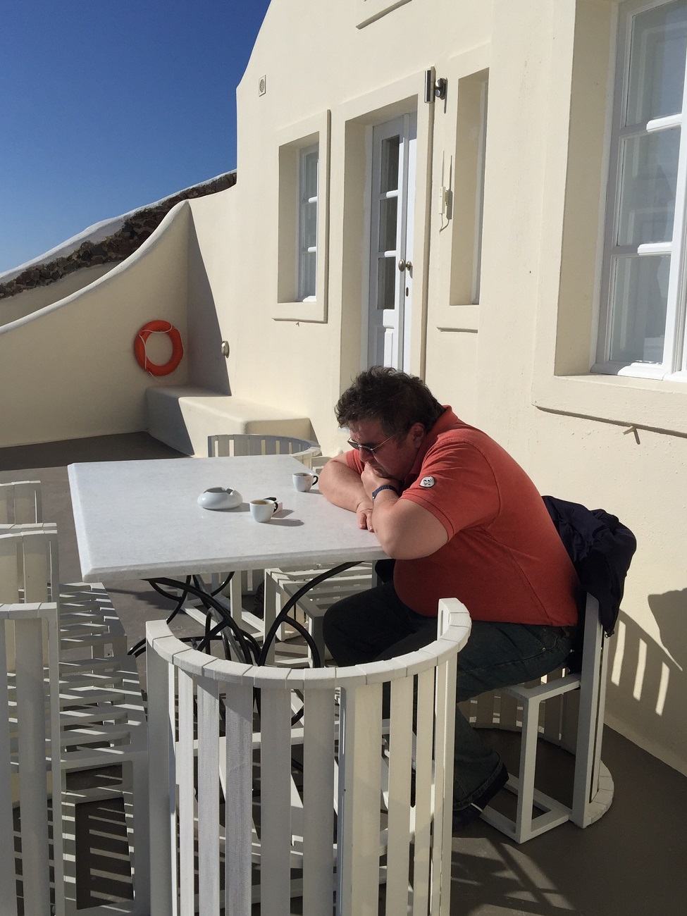 Чтобы как-то отвлечь нас от волнений, pilotatotale предложил сменить тему беседы и поинтересовался, как я планирую расквартировать всех нас на ночлег на романтическом острове Санторини (ну или хотя бы тех, кто до него дойдет). Я принялась подробно докладывать об актуальных неуспехах в поиске и планах B (Bravo), C (Charlie) и D (Delta), которые я планировала успеть реализовать, раз уж наш 04167 стойко летит.