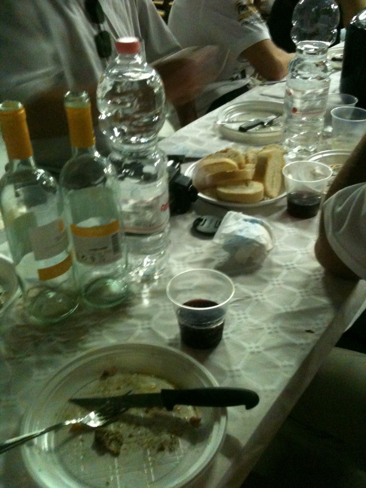 Потом предводителя вывели на общее обозрение и заставили толкать приветственную речь. Предводитель сказал что: -  у нас длинные руки и если надо мы всех достанем!! Делайте взносы господа! О времени следующего заседания будет обьявленно дополнительно! После этого всех итальянцев начали принимать в РАОПА. об этом было написано в отчете у Миши . viewtopic.php?f=12&t=5355&start=30 Вот так прошел этот день. Напиться так и не удалось... Потому как из спиртного на всех была одна бутылка немировки, привезенная из Москвы вертолетчиками, остальное заливали местным вином, которое закончилось в нашем углу стола задолго до шашлыка. Пришлось собрать несколько бутылок у соседей , которые мешкались и не могли решиться- какое им открывать? Белое или красное?!