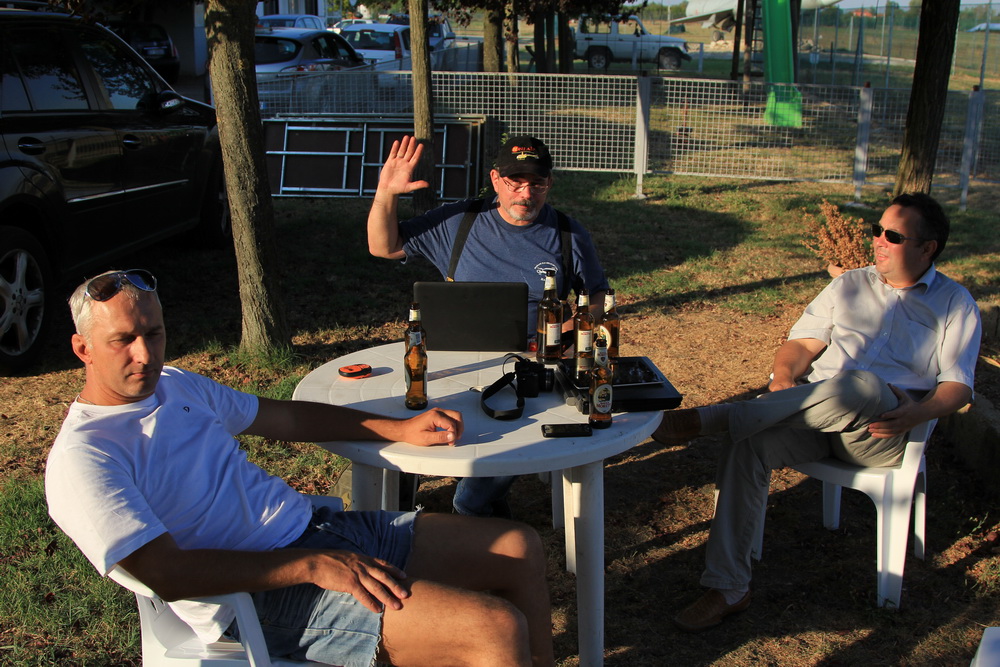 Сразу после взлета меня передали Падова инф и вели по точкам вдоль берега , потом успокоились и последнее указание было ,  - доложить визуальный контакт в Луго.  Через минут тридцать я уже подошел к аэродрому, пристроился ему в "хвост" и запросился " с проходом" , в надежде получить от Миша+Володя пару  хороших снимков... Заходя на второй круг я услышал в эфире скрипучий голос : что-то там... хеликоптер 44, Луго, давайте посадку, несите пиво...