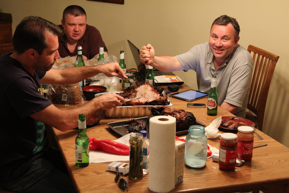 Вечером было застолье, ели, пили, все как положено на охоте (американской) .