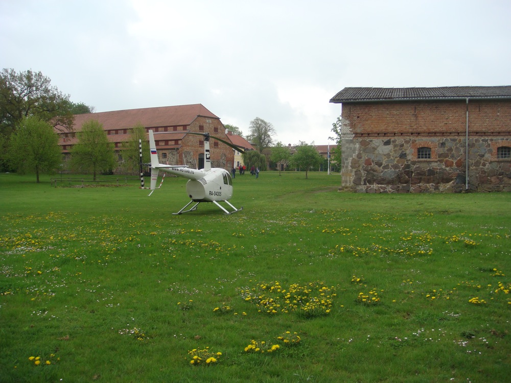 Это наши вертолеты перед отелем (уже наутро, конечно): На следующий день, 9 мая, мы заправлялись на аэродроме в паре минут лета от отеля. Увидели там несколько самолетов и почувствовали чувство стыда за Державу... Пожалуй, ни одного живого Як-50 у нас уже нет - а в Германии они летают. Под ФЛАшной регистрацией, в ДОСААФовской раскраске и идеальном состоянии... Разговор с владельцем Як-50. А вот в День Победы молодые немцы на нашем Як-52 полетели... Этот борт тоже в отличном состоянии... Но не долго мы печалились - все же Праздник! И решили в ЭТОТ ДЕНЬ постоять на ступенях Рейхстага, который находился километрах в 150 к Югу от нас...