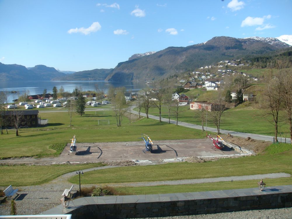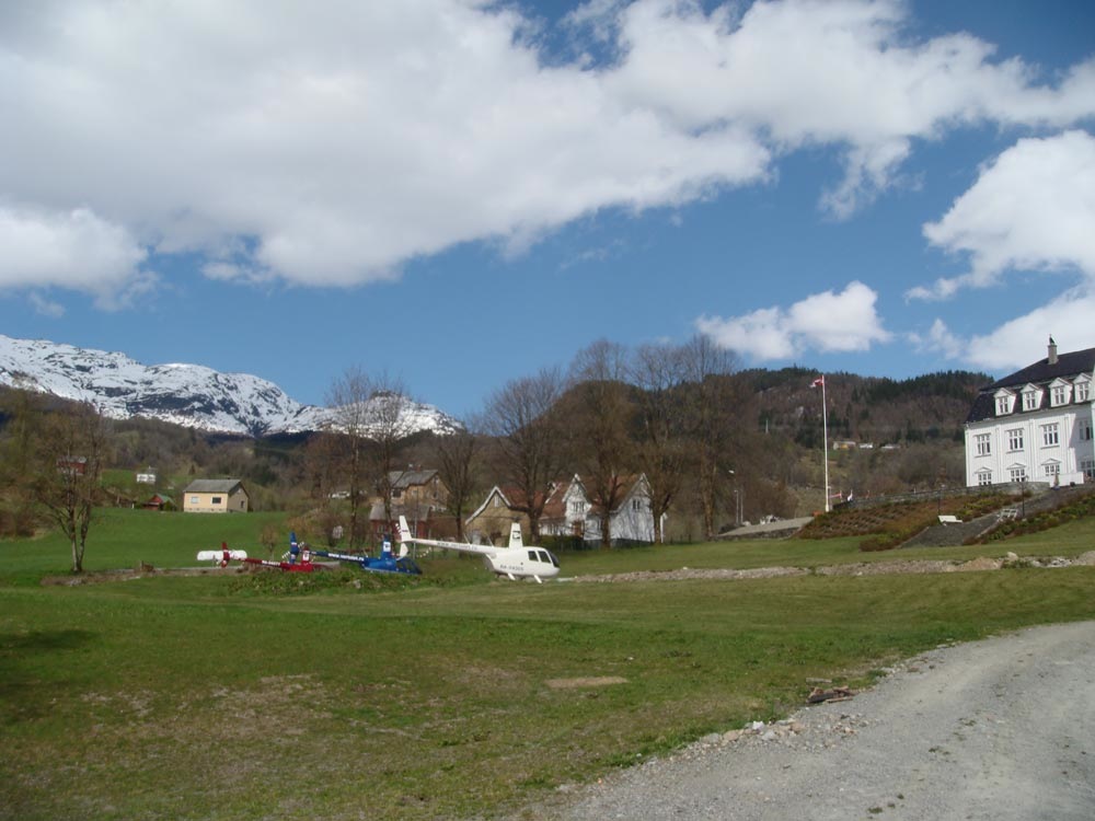 Швеция встречала нас радостными смайликами По пути заправились в ENNO и прилетели в городок Sauda, в Sauda Fjord Hotel. Интересный домик 1914 года постройки с обалденным видом на фьорд и снежными вершинами вокруг. Так прошел день 6 мая... Вот наш отель и вертолеты перед ним На следующий день, 7 мая, полетали по фьордам и слетали на аэродром в Ставангер (ENZV) на заправку и повидать знакомых по транс-атлантическому перелету... Ставангер... Полетали над ледниками вокруг отеля