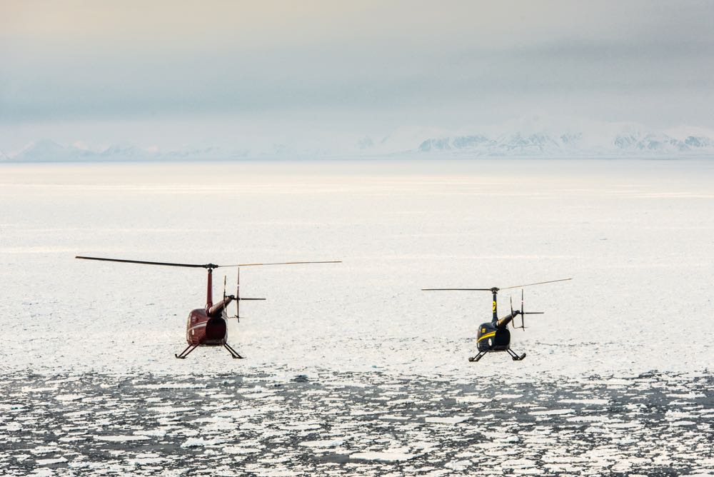 И вот мы, понимая, что топлива нам точно не хватит, озаботились созданием промежуточной заправки между Лонгийером и Барнео. Тщательно изучили ледовую обстановку по маршруту - получалось, что крепкий паковый лед начинался не ближе 50-60 миль от северного берега архипелага. Нас такое расстояние устраивало, оно не устраивало тех, к кому мы обращались с запросами о выброске топлива. Почему-то получалось на пределе возможностей вертолета. Самолеты на лыжах из разных стран тоже нас ничем не порадовали. Нам же нужно было закинуть на лед хотя бы по 150 литров керосина на борт "туда" и столько же - "обратно". Володя и Женя вели длительные переговоры с самыми разными операторами - к сожалению, безуспешно. Наконец, мелькнула надежда: один из участников нашей экспедиции нажал на рычаг личных связей, и Ми-8 нашей российской компании "АрктикУголь" согласился сделать это... Но согласился достаточно неопределенно и начал процедуру получения специального разрешения Губернатора Шпицбергена на эту нетипичную операцию. Мы заложили "план Б": каждый борт берет на борт максимум топлива, все летим за 200 миль на Север, находим льдину, сливаем из допбака в резиновый бак 200 литров керосина, возвращаемся обратно, повторяем процедуру. Затем стартуем из Лонгийера с полной заправкой, на льду дозаправляемся. Возле топлива оставляем трекер inReach и дуем дальше на Барнео, прихватив с собой один опустошенный резиновый бак, а второй, полный, оставляем на льду "до обратного". На полярном "треугольнике" два борта закидывают по 200 литров за 100 миль от Барнео, возвращаются, потом все летят по полюсам и на пути заливают это топливо. Эта история заняла всего один абзац в рассказе - и не менее недели в реальной жизни. Мы соревновались в составлении таблиц в Exсel, спорили чуть не до хрипоты о минимально допустимом навигационном запасе (20, 15 или 10 процентов), вспоминали случаи из своей и чужой практики...
