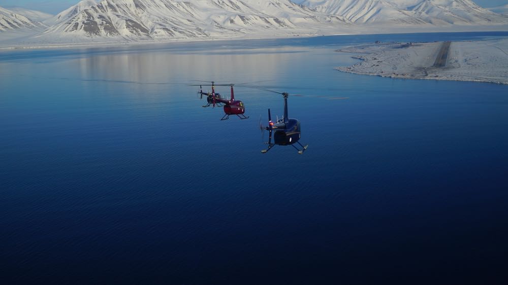 Песчаные пляжи Медвежьего... Ближе к Шпицбергену начался лед. Сначала это были отдельные льдинки, по форме похожие на медуз или блинчики (блинчатый лед), потом льдины стали крупнее. К сожалению, фото не может передать поистине величественной и завораживающей картины, как Океан "дышит" под этим не окрепшим еще ледяным панцирем: волны становятся очень длинными, и ледяная грудь океана то вздымается - то опадает... Надеюсь, на видео получится передать это - но это будет позже... Мы прошли по западному берегу Шпицбергена, повернули направо в залив и красиво зашли на посадку на ВПП 10 аэродрома Лонгийер (ENSB). На перроне нас встретил член нашего клуба Борис Зимин, командир R66 N-44829, прилетевший из Лондона тремя днями раньше и уже успевший исследовать весь остров вдоль и поперек... Мы были страшно рады, что не только наши ноги, но и лыжи наших вертолетов стоят на суше. После этого была гостиница, лучший ресторан с отдельным банкетным залом и опять долгие разговоры... В общем, кто случайно или намеренно окажется на Шпицбергене в главном городе Лонгийер, настоятельно и смело рекомендую ресторан "Base Camp" - там, в частности, действительно потрясающая пицца (подается как закуска перед прочими блюдами - не ешьте много!)! Отличные Pepper Steaks и очень вкусный суп!
