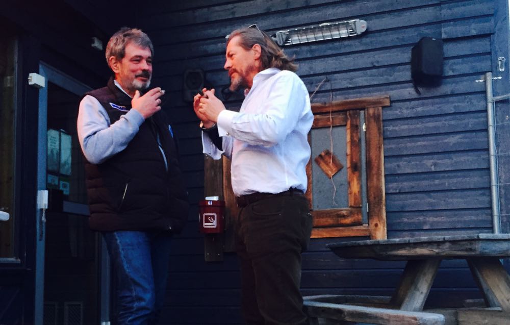 Мы заправились и озадачились принятием решения: лететь/не лететь сегодня на Шпицберген? Решение давалось нам трудно: с одной стороны, за сегодня мы пролетели не более трех часов - так, легкая прогулка; с другой - местные пилоты спасательных вертолетов начали рассказывать нам ужасы о переохлажденном тумане на маршруте и неизбежном мгновенном обледенении над холодным морем... С третьей - нам почему-то захотелось остаться на ночь, перевести дух после вчерашнего довольно напряженного дня и поесть знаменитых норвежских крабов... С четвертой стороны, мы понимали, что три полетных часа в день - это как-то совсем не геройски и не по-нашему, не по-полярному... а мировая общественность-то следит за треками... типа, билеты на матч распроданы, нельзя разочаровывать болельщиков... Опять же, оставшись в Хаммерфесте, мы на сутки отставали от графика, что было критично для Саши Лелекова по работе... А переохлажденный туман куда девать?.. Кирилл предложил компромиссный вариант: быстро смотаться в город, поесть крабов - а потом "со свежими силами" двинуть на круглосуточно освещаемый Солнцем Шпицберген. В общем, решение принималось трудно - похоже, мы извели весь запас кофе в комнате отдыха пилотов...