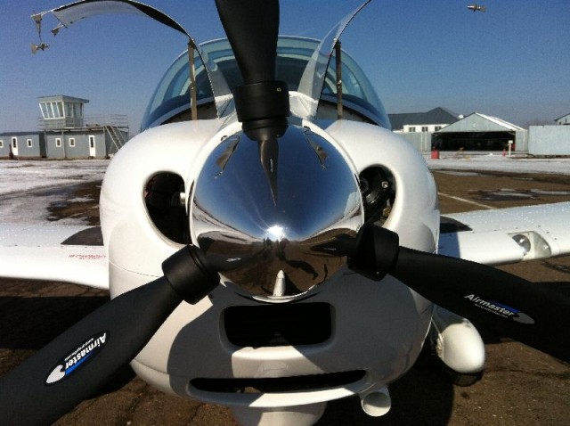 Облетали Р-2002 с трехлопастным AIRMASTER. Появилась возможность сравнить характеристики одного и того-же самолета с тремя разными винтами. Изначально на самолете был установлен итальянский деревяный винт GT-ТONINI фиксированного шага-середнячок выдавал вполне приемлемые взлетные и крейсерские характеристики, но ведь всегда хочется большего. В качестве альтернативы был выбран красавец АР-420 (AIRMASTER) c "модными" и дорогими лопастями брэндовой SENSENICH. Диаметр решил выбрать максимально возможный. SIERRA сам по-себе красивый самолет, и AIRMASTER безусловно еще больше подчеркивает его аэродинамические "дельфиньи" формы. С этим винтом самолет перелетел из Москвы через Стерлитомак в родной Красноярск. В сравнении со стандартным с фиксированным шагом разбег самолета сократился, а скороподъемность стала на порядок выше. Мягкая работа во всем диапазоне оборотов, но... "крейсер" при 4900-5000 остался прежним-в среднем 100 узлов.