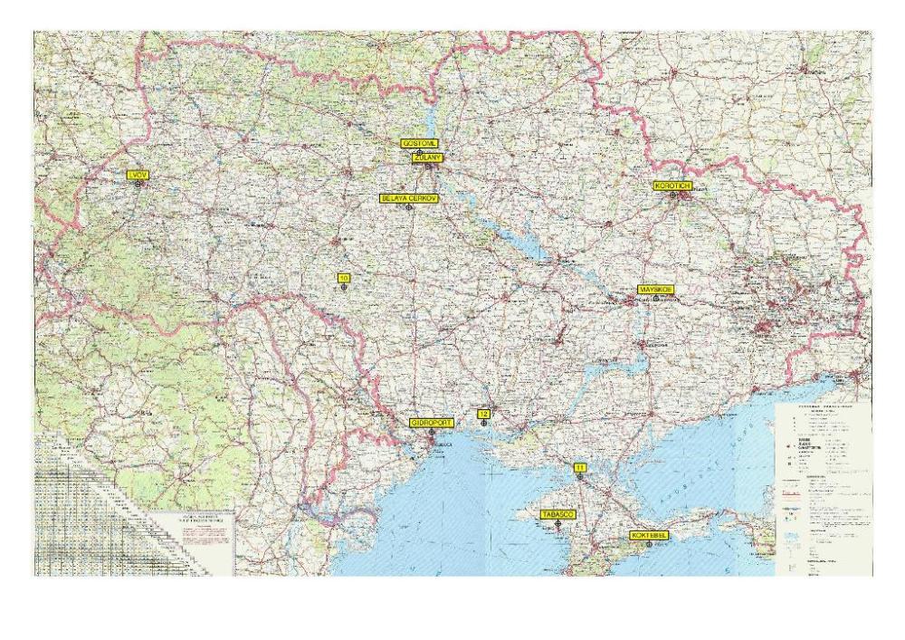Выбрал аэродромы на Украине которые могут нас заинтересовать. карту прилагаю:
