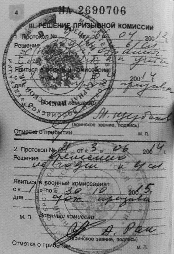 Re: Военный билет и ВЛЭК. Все вопросы.