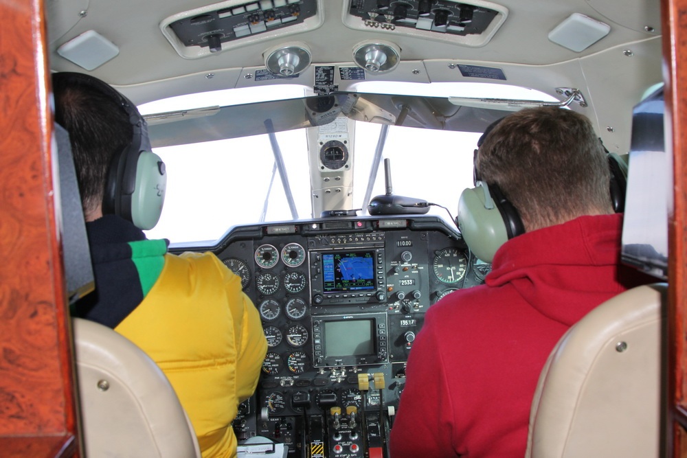 Мы поднялись ( разницу чувствуете..? "поднялись"!!) по трапу в салон, Саша и Егор заняли места в кабине а мы с Каплей расположились в салоне. Кабину стало видно сразу после включения питания. Саня что то очень долго читал, проверял, трогал руками выключатели, потом сосредоточился и как я понял начал запускать двигатели... Процедуру запуска подробнее опишу позже, когда прийдет время занять место в правой чашке... Двигатели зашипели, потом шипение перекрыл гул винтов, это был другой гул, не как у поршневого двигателя. Даже как то завидно стало, я то же хочу такой утробный "УУУУУУУУ" ! В темноте панель приборов подсвечивалась слабым теплым светом, скрывая от постороннего наблюдателя границы расположения приборов. Со стороны казалось что приборы везде, как в космическом корабле. В этом есть принципиальная разница между "стеклянной кабиной " и классической,- романтика полета может быть только именно в такой кабине, наполненной звуками гироскопов и мерцающей стрелочками и лампочками, именно в таой кабине можно чувствовать себя летчиком а не оператором компьютера.