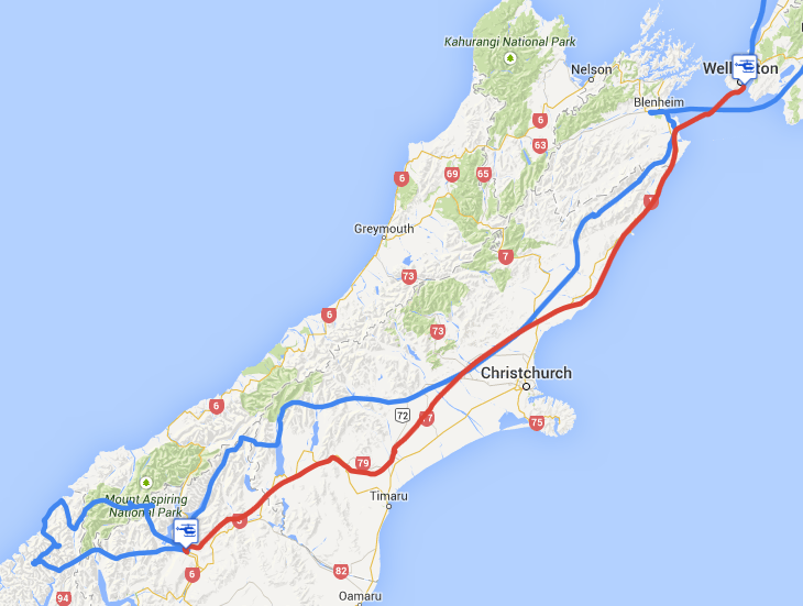 1. Wellington Airport, NZWN (00:31Z) -> Wanaka Airport, NZWF (03:56Z)