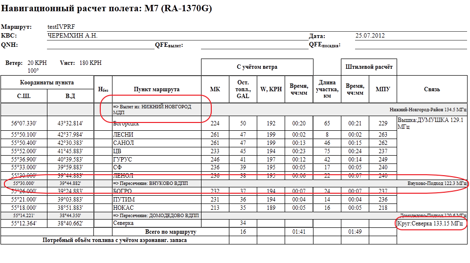 -указание частот и позывных для аэродромов включенных в план. Очевидно, что все это работает, при наличии данных в базе АОПА.