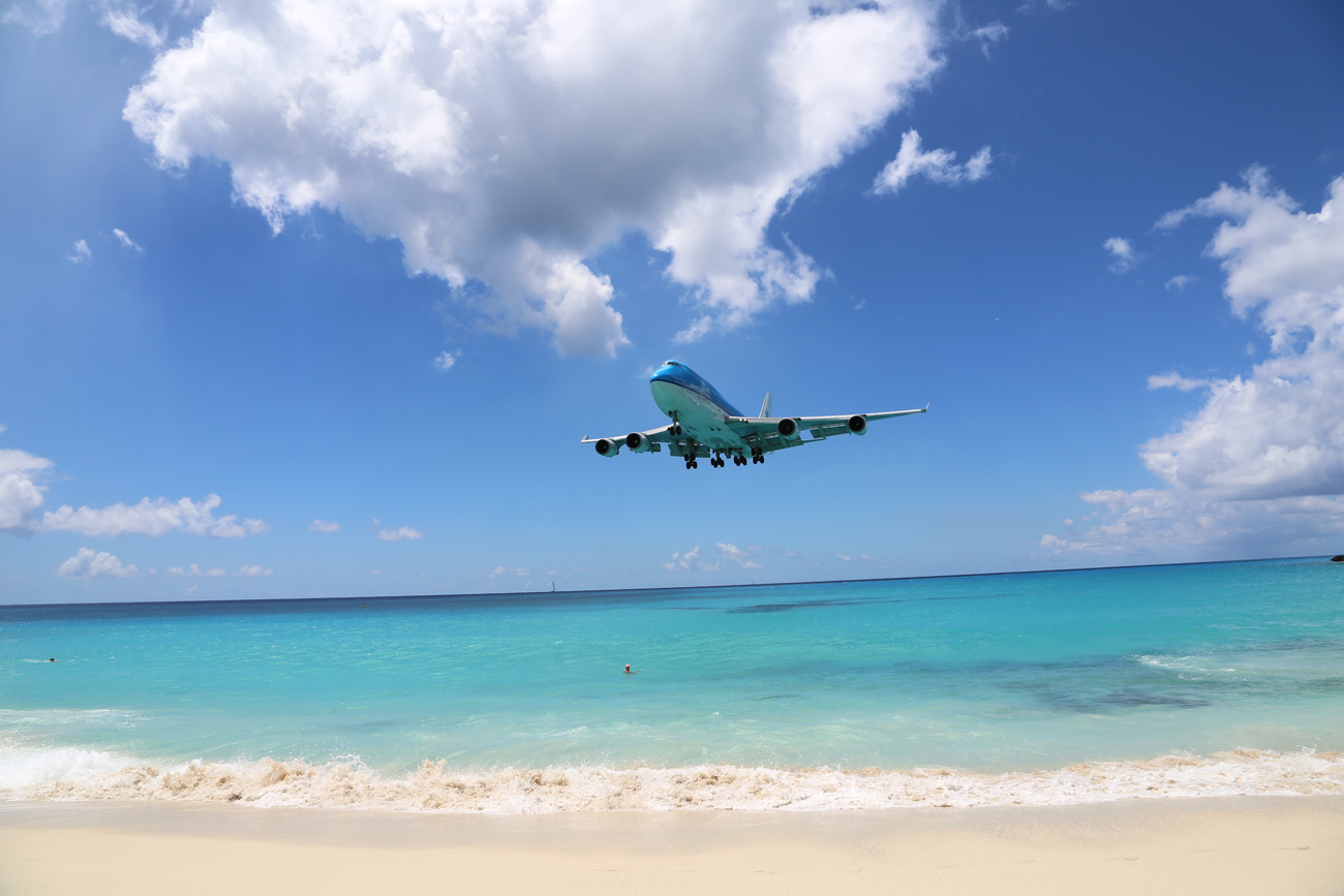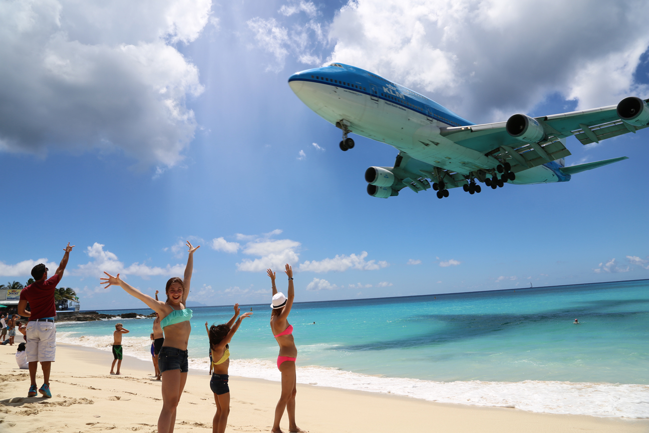 Пока Вадик пишет отчет о полете на Сен Мартен, я туда успел слетать еще раз и на этот раз получилось сфотографировать одно из главных событий острова (по мнению авиаторов), это заход Boeing 747-400 KLM. Я говорил жене и детям что смотреть надо на меня когда он над ними будет пролетать, но жена и младшая дочка не выдержали и отвернулись в его сторону.