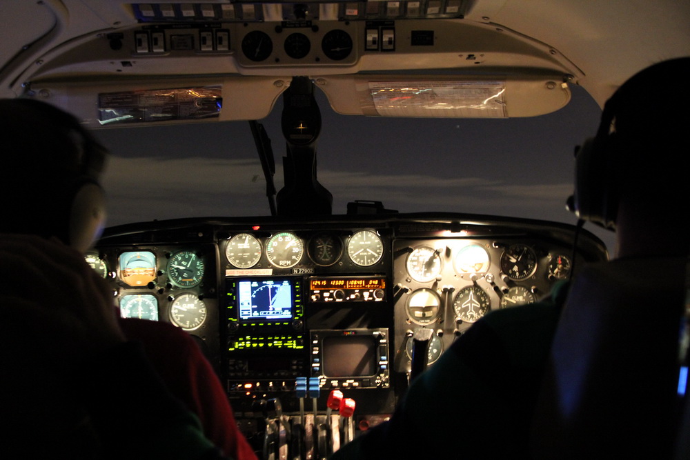 Через пару часов был последний сеанс, диспетчер предупредил что дальше связи нет, дал частоту Гендер радар и предложил попробовать связаться с ним примерно за 100 миль до Гусс Бей, пожелал удачи и отключился. Тем временем погода по немногу стала ухудшаться и мне приходилось всматриваться в немноту что бы понять - просматриваются звезды или нет. Если звесд небыло видно- я включал подсветку на крыле что бы видеть в каких условиях мы летим и не пропустить начала возможного обледенения.