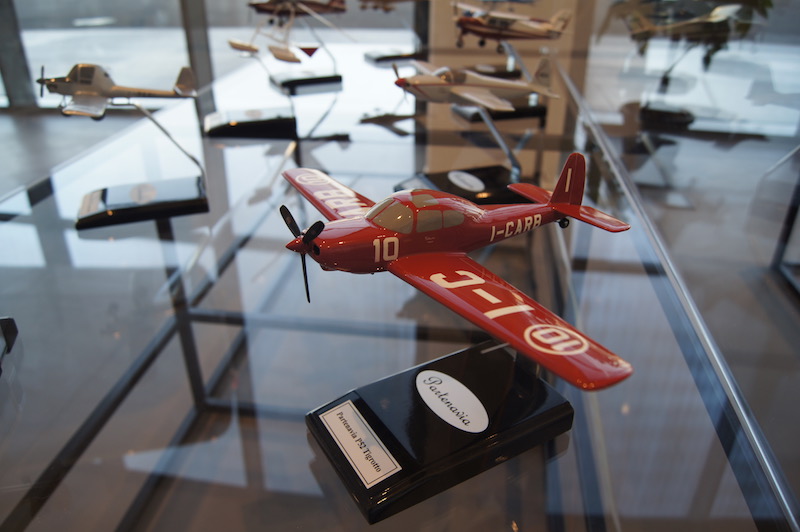 Под стеклянными витринами огромное количество моделей, выпускаемых за все время долгого (более 60-ти лет) существования Компании. Классические подкосные высокопланы, стремительные низкопланы, двухдвигательные поршневые и газотурбинные, и даже морской автожир-змей! Честно – никогда не знал, что история TECNAM насчитывает столько разработок. Вертикальные стенды с уникальными фото где запечатлены основатели с их многочисленными моделями самолетов.