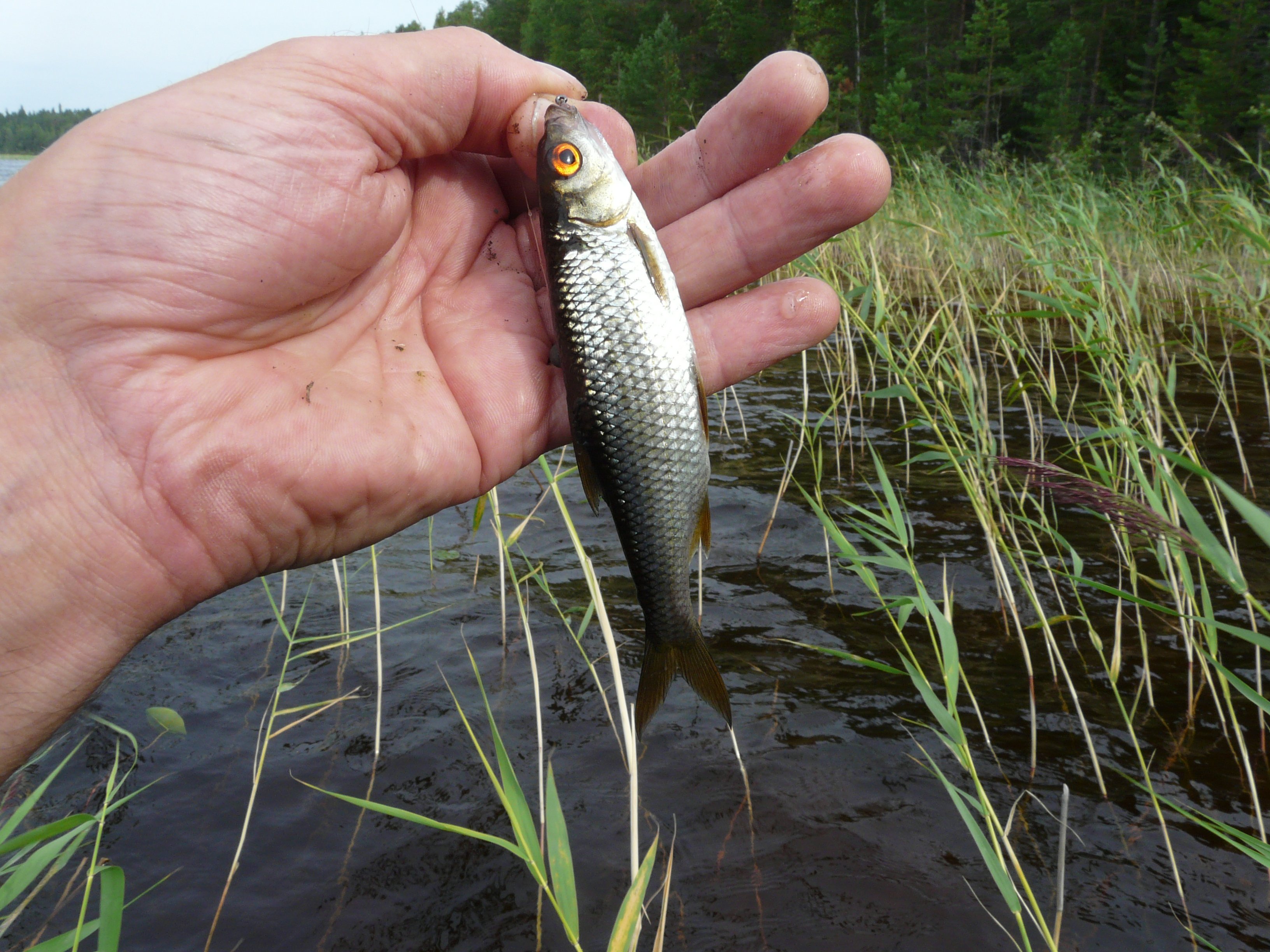 До озера метров 300 по вырубке и заболоченному лесу. Фигня! Мы же ВЛЭК проходим! Поразил ковёр из разных ягод. Они почти спелые. Мы объелись. А вот рыбалка и на этом озере разочаровала. Поклёвки щуки я не видел ни одной. Но на каждой проводке чувствовались тычки мелкого окуня,которому щучья блесна была не по зубам. Взяв поплавочную удочку я убедился в своей правоте. Прогонистые окуньки и невероятной красоты плотвички клевали как в аквариуме. Но это не наш размерчик.
