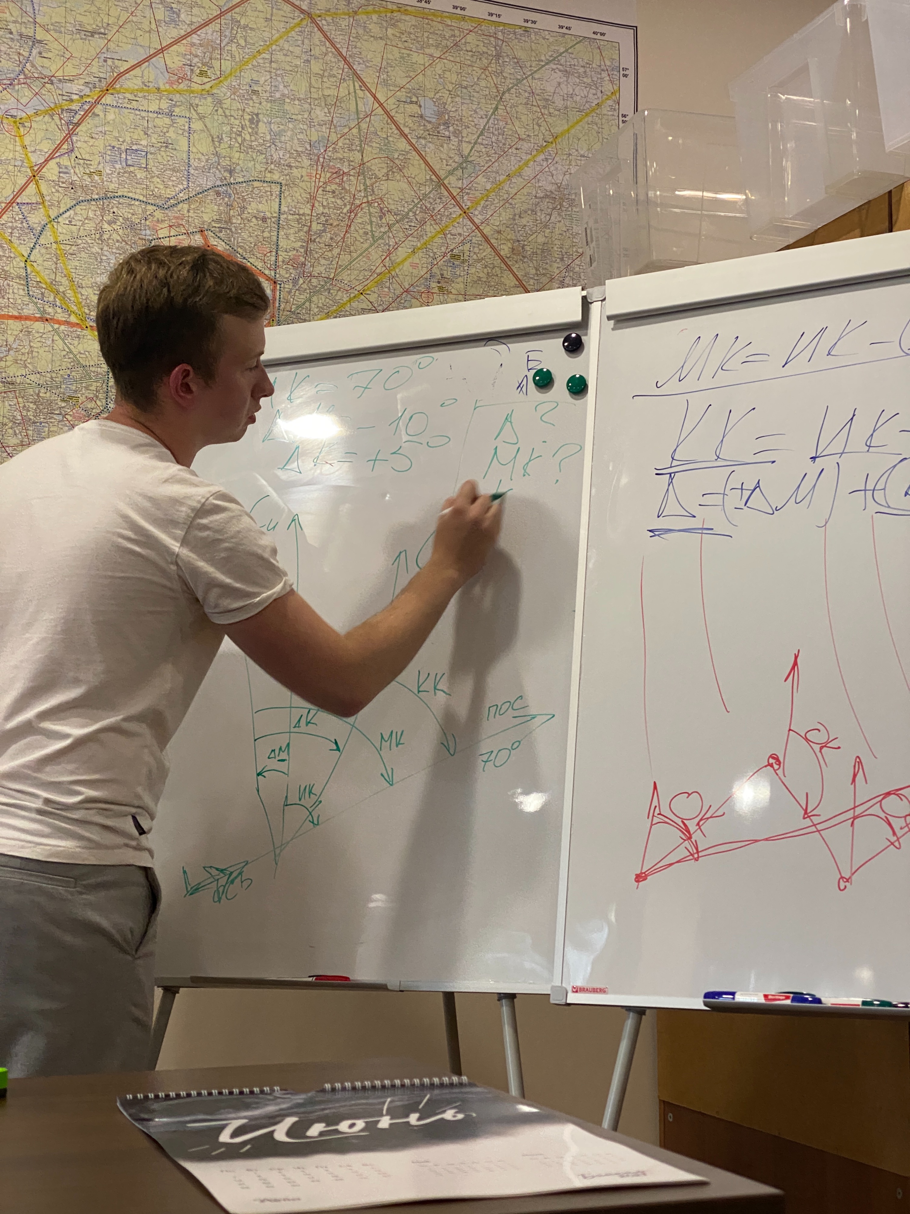 За 2 недели ускоренная группа прошла 1/3 теоретической части: навигацию, аэродинамику, продолжает изучать воздушное право и общее знание по воздушным судам.