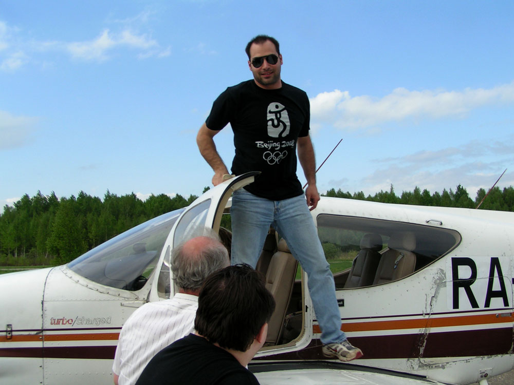 В небе появилась Super Dimona и привезла ещё горячую жаренную щуку! Как ни пытали мы экипаж- где они её взяли в небе, это так и осталось тайной. Почти одновременно подошёл P92 и 502 на 182 Цессне. Всех прилетающих встречала машина сопровождения Перрон начал заполняться, но места ещё много