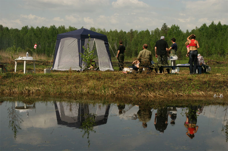 Вначале приехала наземная команда. Был развёрнут базовый лагерь, место РП, установлен "колдун", зона отдыха, кухня. В 11:20 Прилетел первый борт. Экипаж был накормлен и начал знакомить всех желающих с воздуха с живописными окрестностями аэродрома. А в это время с 4 аэродромов Московской области и одного дачного участка в небо поднимались самолёты. Поднимались с одной целью - прилететь в гости к друзьям, увидеться, посидеть за столом, пообщаться!