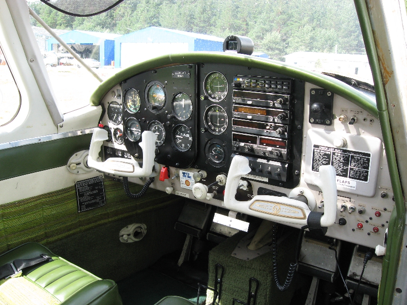 Управление по элеронам тоже имеет свои особенности. Штурвальная колонка фиксируется в центральном положении возвратной пружиной и, вдобавок, имеет определенную связь с педалями. Могу предположить, что первое сделано в целях безопасности на случай "бросания" управления, а второе - для автоматической координации разворотов. К пружине вопреки ожиданиям привык достаточно быстро, а связь с педалями оказалась недостаточна - в разворотах все-равно приходится дополнительно "давать ноги".