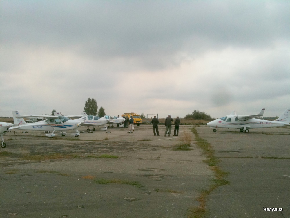 Пасмурным осенним утром, когда даже кот Васька не хотел выходить на улицу, мы встали рано, часиков в 8. Предполетный брифинг для экипажей, кофе поверх вкусной овсянки... и вот уже 5 бортов Tecnam (включая двухдвигательный P2006T), заботливо подготовленные техниками, стоят на перроне ЧелАвиа: