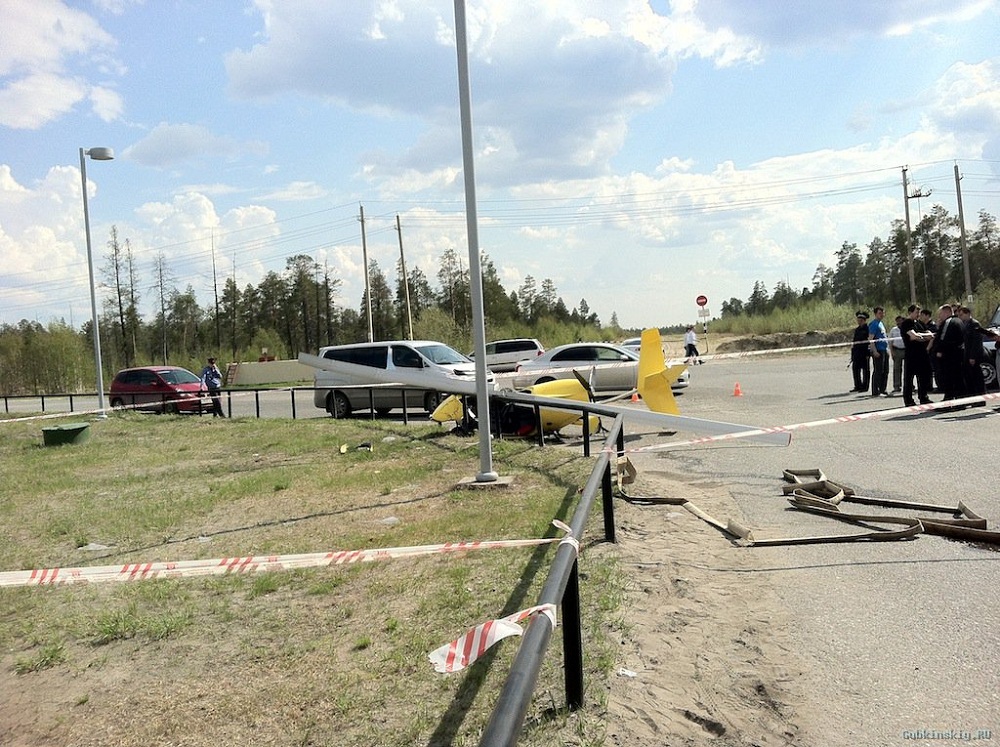Это не вертолет. На окраине Губкинского, а вернее на проезжую часть, за которой уже нет жилых домов упал автожир, желтого цвета . Винт толкающий, трех лопастной, несущий двух лопастной, экипаж два человека, располагаються друг за другом. Был на месте - на борту знаков регистрационных не увидал. Несущий винт имеет не значительные повреждения, пару вмятин, и не погнут практически. Два дня назад некий автожир продавался в одном из автосалонов города, похоже что -этот. Город маленький все все узнают, друг от друга. Завтра может что проясниться. Милиция весь день его караулила , ждали похоже спецов из Салехарда. Есть сайт местный там фото выложены , вставлять не знаю как. Народ стебаеться как обычно- зависть. А тут соболезновать надо. Парни молодые говорят лет по 25.