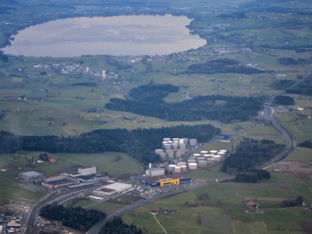 Искусственное озеро, кстати. http://en.wikipedia.org/wiki/Sihlsee Sihlsee.