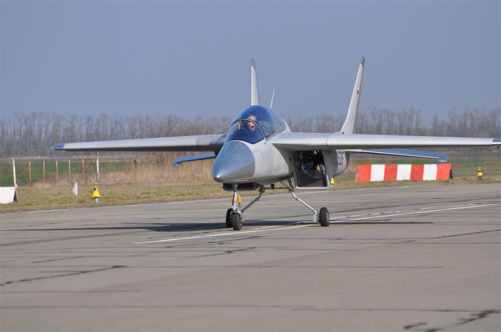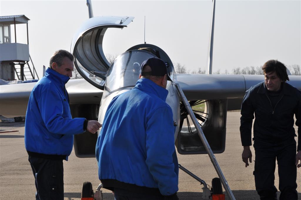 Разбег до подъема передней стойки производился с полным отклонением ручки на себя. Отделение самолета от ВПП произошло на приборной скорости 110 км/час. При этом дистанция разбега составила 450 метров. В воздухе самолет устойчив. Чувствительность управления аналогична другим пилотажным самолетам.