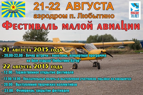 21-22 августа на территории Любытинского района состоится II Фестиваль малой авиации, посвященный 70-летию Победы в Великой Отечественной войне и «Дню воздушного флота России».