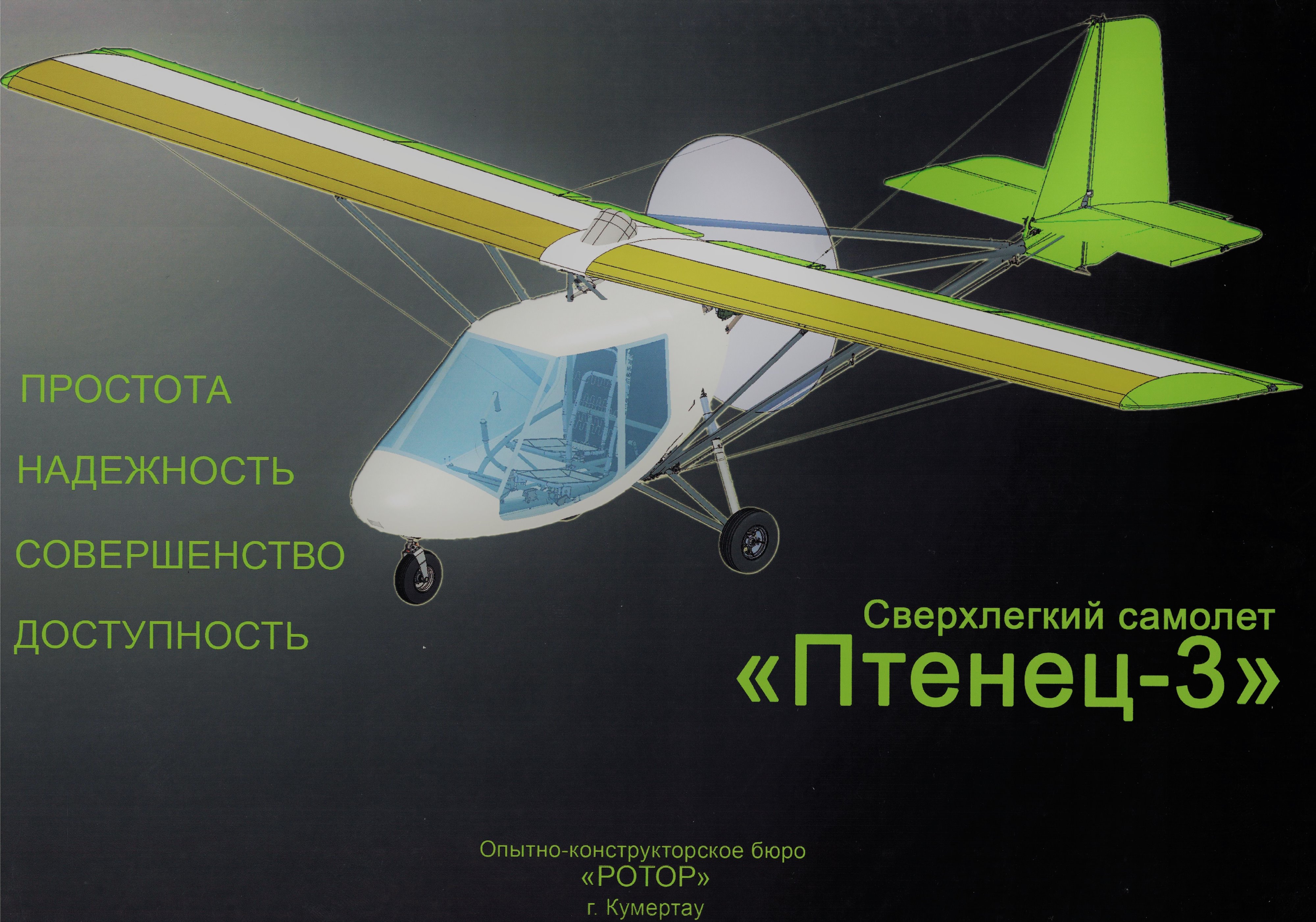 ООО Ермолинское летно-исследовательское испытательное предприятие" (Вертолетный центр "Ермолино" (Авиазапчасть) сообщает о начале производства, продажи, послепродажного обслуживания многоцелевого, быстроразборного и всепогодного самолета внеаэродромного базирования сегмента ультралайт "Птенец-3", созданного в ОКБ "Ротор" на основе многолетнего опыта современного проектирования и эксплуатации сверхлегких летательных аппаратов.