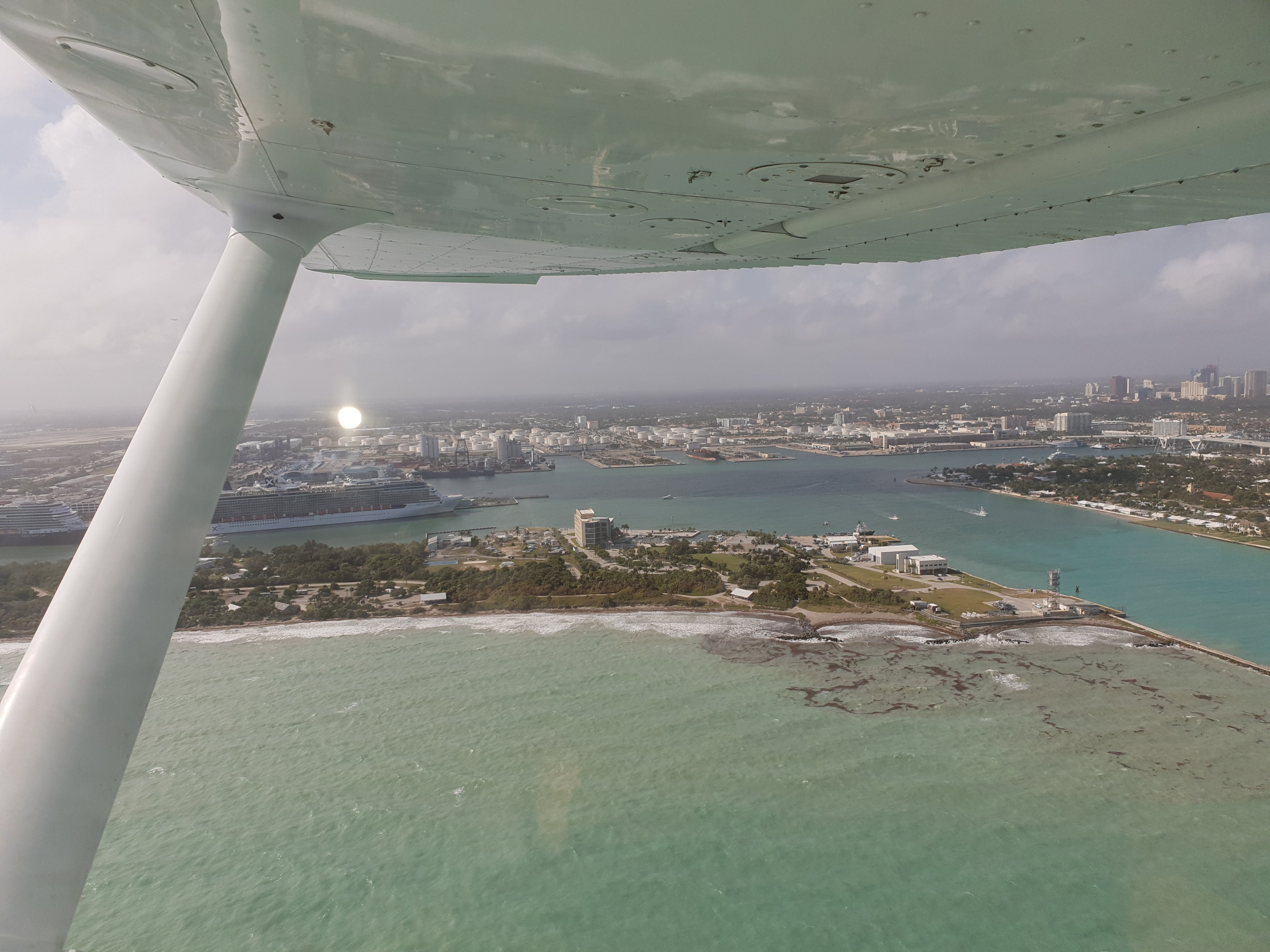 Два полета с инструктором и меня выпустили самостоятельно по кругам. Далее полет по маршруту с инструктором от побережья о побережья и чтобы выполнить условия для FAA на следующий день я слетал соло в киВест. Красиво, но у моего организма, измученного нарзаном, Мальдивамисейшалиипрочимибали, восторга виды не вызвали.