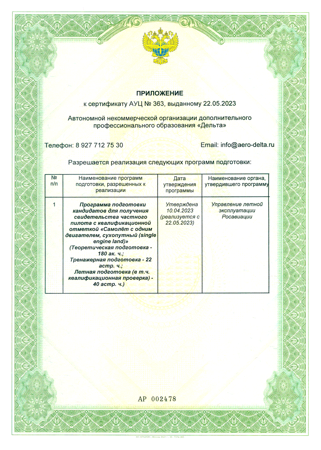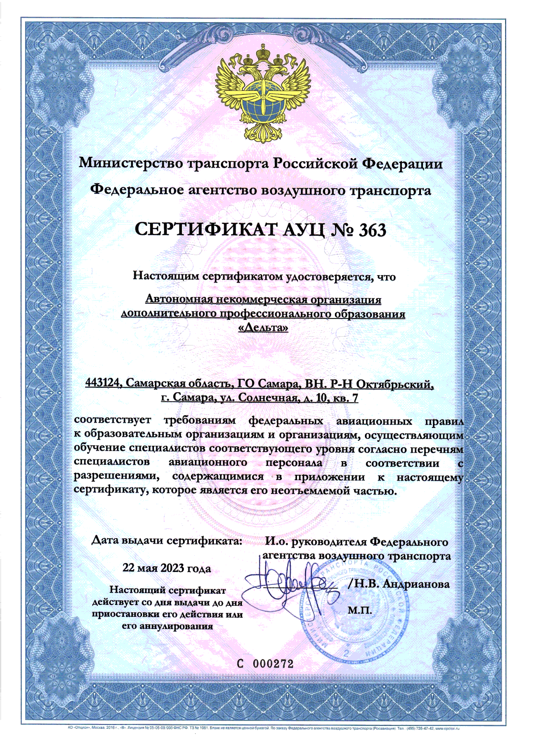 Сертификат АУЦ №363 от 22.05.2023