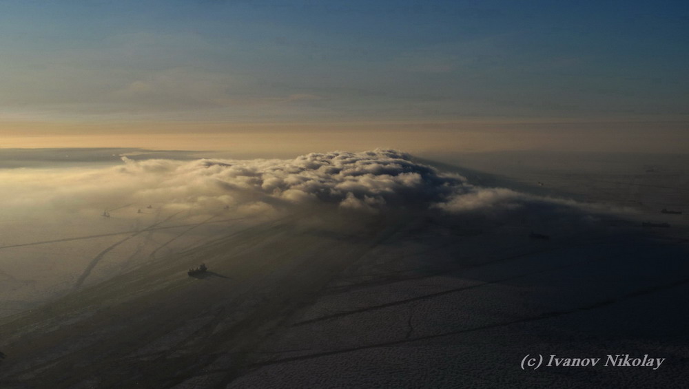 Над рейдом формируются облака<br />14.02.10<br />700 м