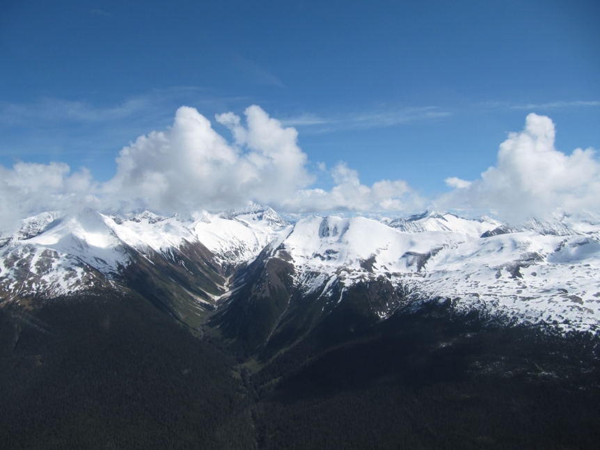 перегон вертолёта AS-355F2 через горы из Terrace в Fort Nelson. максимальные превышения чуть больше 10 000 футов. один раз садился на заправку в каком-то ущёлье.