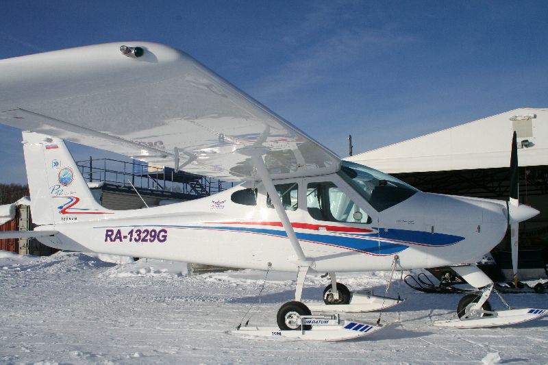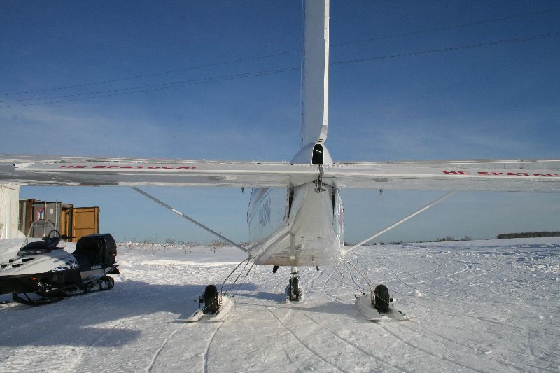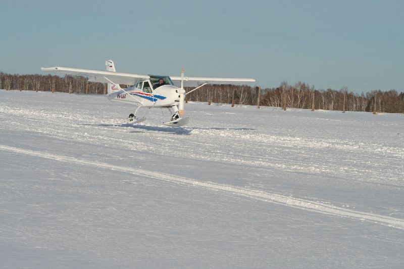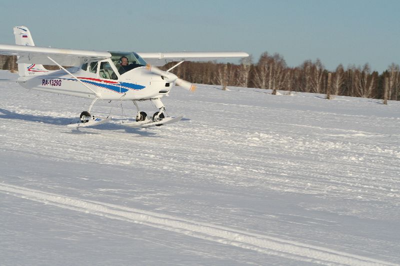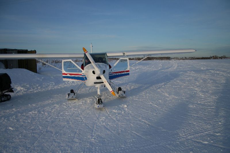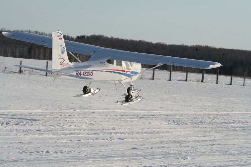 Установили и облетали на "Эхе" лыжи канадской фирмы DATUM. Лыжи с электроприводом, позволяющим выпускать и убирать колеса в полете, или на земле-заехать в ангар, подсесть на малоснежную ВПП. Впечатления очень хорошие. Качество лыж-супер! При разбеге и рулении впечатление, что самолет летит над ВПП... Летали целый день в кайф. Посадка на целину-реально. Следующая будет "Сиерра". Ибо в Сибири без лыж никуда.