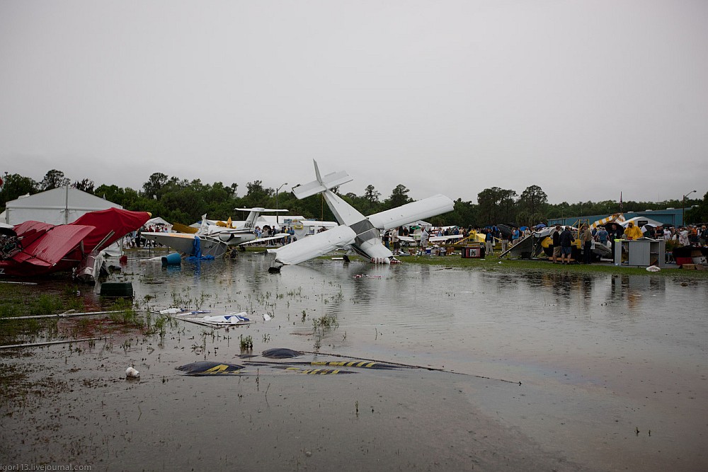 The SUN 'n FUN International Fly-In & Expo, taking place now through Sunday, April 3 at Lakeland Linder Regional Airport in Lakeland, Fla., experienced severe weather this afternoon that caused significant damage to an estimated 50 exhibitor and privately owned aircraft as well as a large number of tents and other temporary structures. No major injuries were reported, although 15 people were treated for injuries at SUN ‘n FUN’s on-site medical hospitality center. Seven of those were subsequently transported to Lakeland Regional Medical Center.