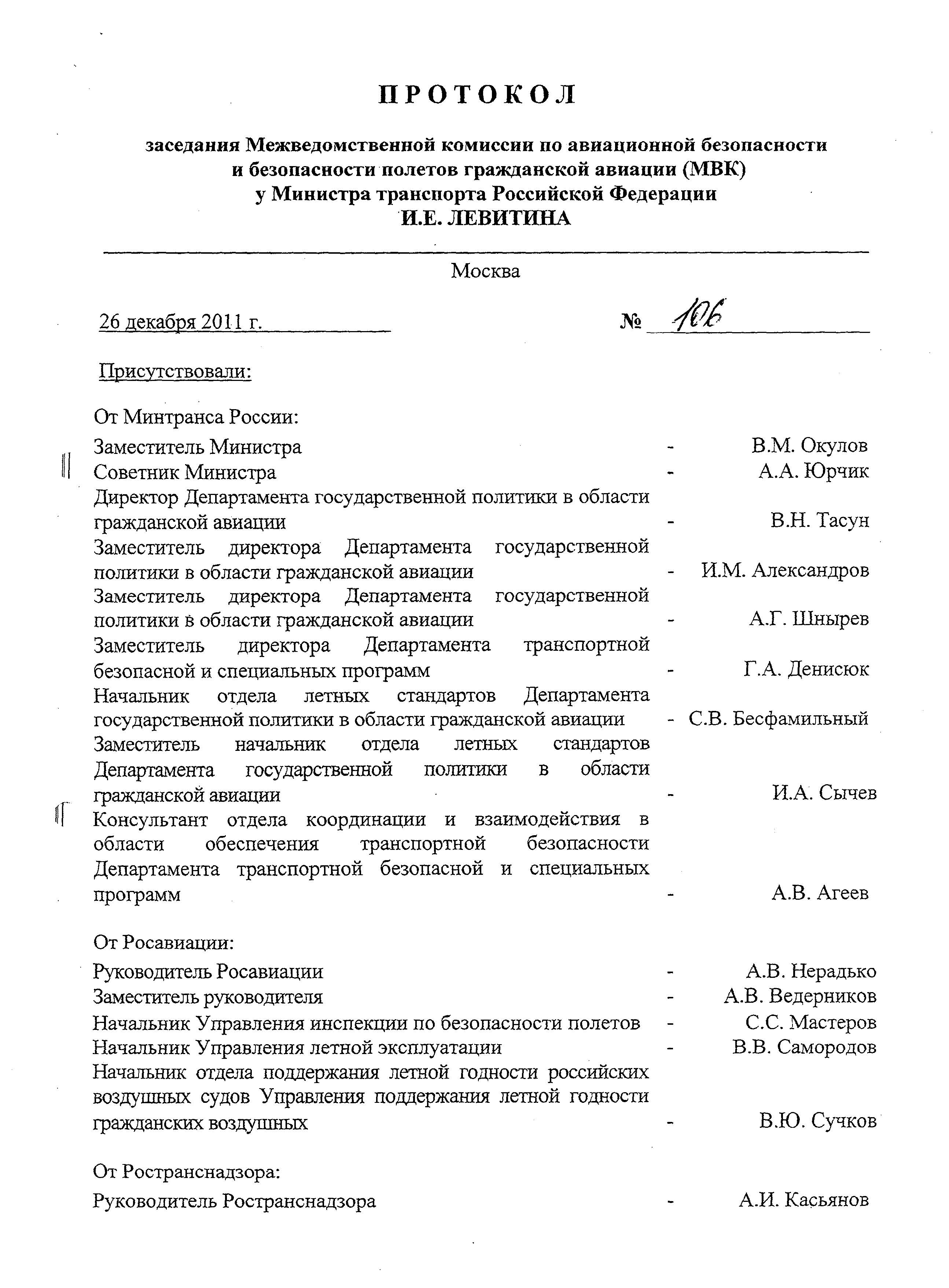 26 декабря Министр транспорта РФ Игорь Левитин провел очередное заседание Межведомственной комиссии по авиационной безопасности и безопасности полетов гражданской авиации