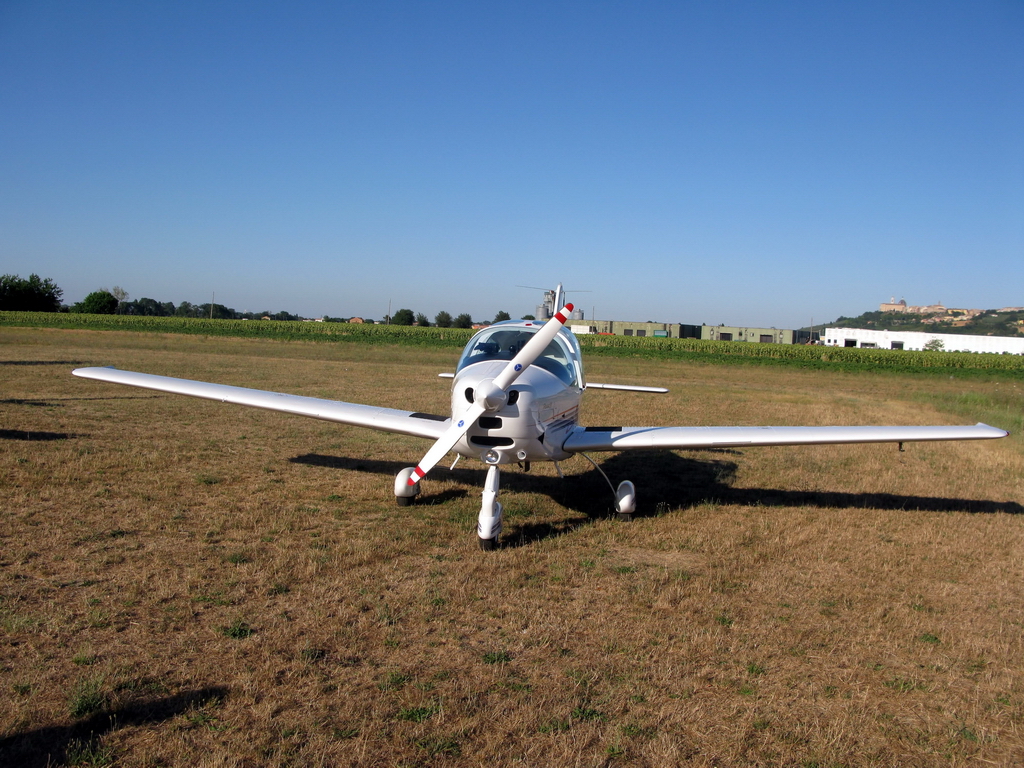 Запускаемся и греемся. Быстро забиваю в гармин ближайшие точки маршрута. Поехали….мы рулим первыми, на радиочастоте местного аэродромчика идет какой-то радиообмен на английском и итальянском. На полосе сидит самолетик, не взлетает. Мы стоим на предварительном, проверяемся, самолетик, убедившись, что мы ему на полосу не вылезем, начинает разбег, отрывается и уходит в жаркое небо. Выруливаем и трясемся по неровностям, чтобы занять исполнительный, надо порулить по всей полосе. За нами рулят RA и Foxtrot, занимаем исполнительный, соответственно при развороте Foxtrot оказывается лидером, RA за ним, ну и мы сзади. Еще одна проверка, подтверждаем готовность и Foxtrot начинает разбег. Взлетает тяжеловато – жарко, полные баки, начинает неспешный набор высоты. RA начинает разбег, отрывается, наступает наша очередь, газ вперед, побежали. Скорость растет медленно, самолет начинает уходить с полосы – ветер чуть сбоку, подпрыгивает, еще раз тыкается колесами об землю и переходит в набор. Наше путешествие началось…..